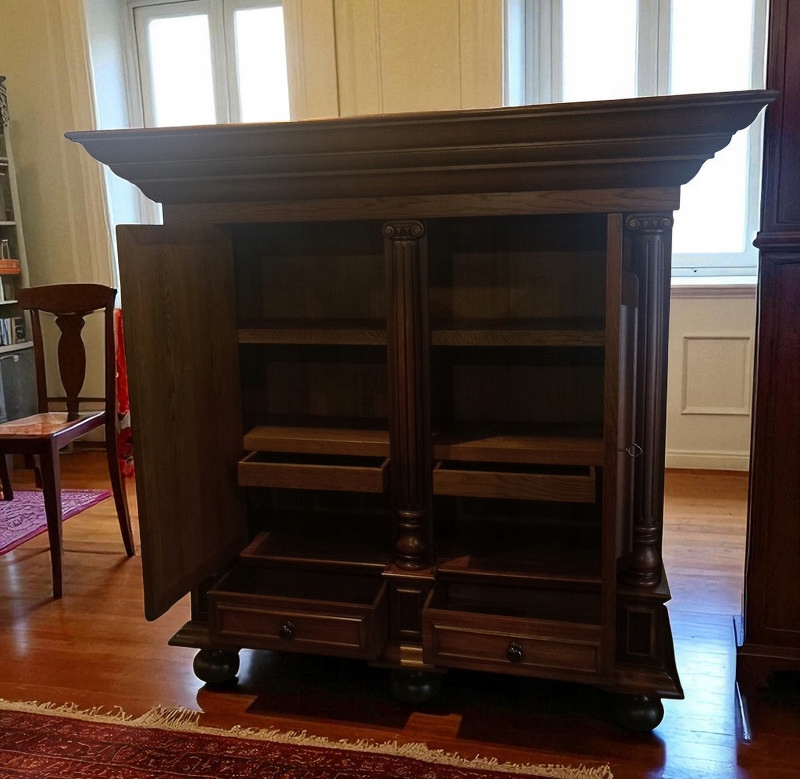 Дубовый шкаф в деревенском стиле для нижнего белья, постельного белья, одежды, а также часто используется как декоративный предмет мебели для хранения документов. Мебель находится в очень хорошем визуальном и техническом состоянии; Замок работает, без каких-либо повреждений и дефектов. Несмотря на возраст; 1960-1970-е годы, предмет мебели без каких-либо финансовых затрат на установку и наслаждение этим замечательным экспонатом. Цвет дуб рустик.