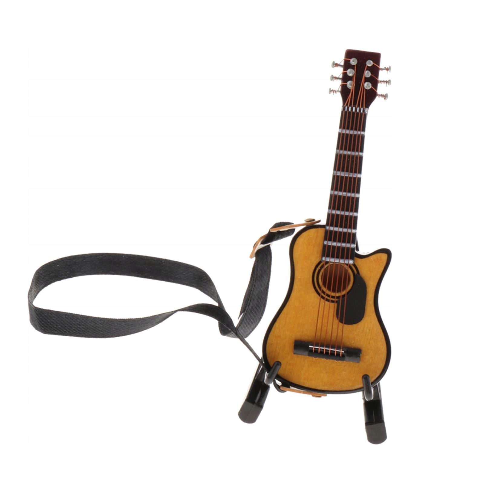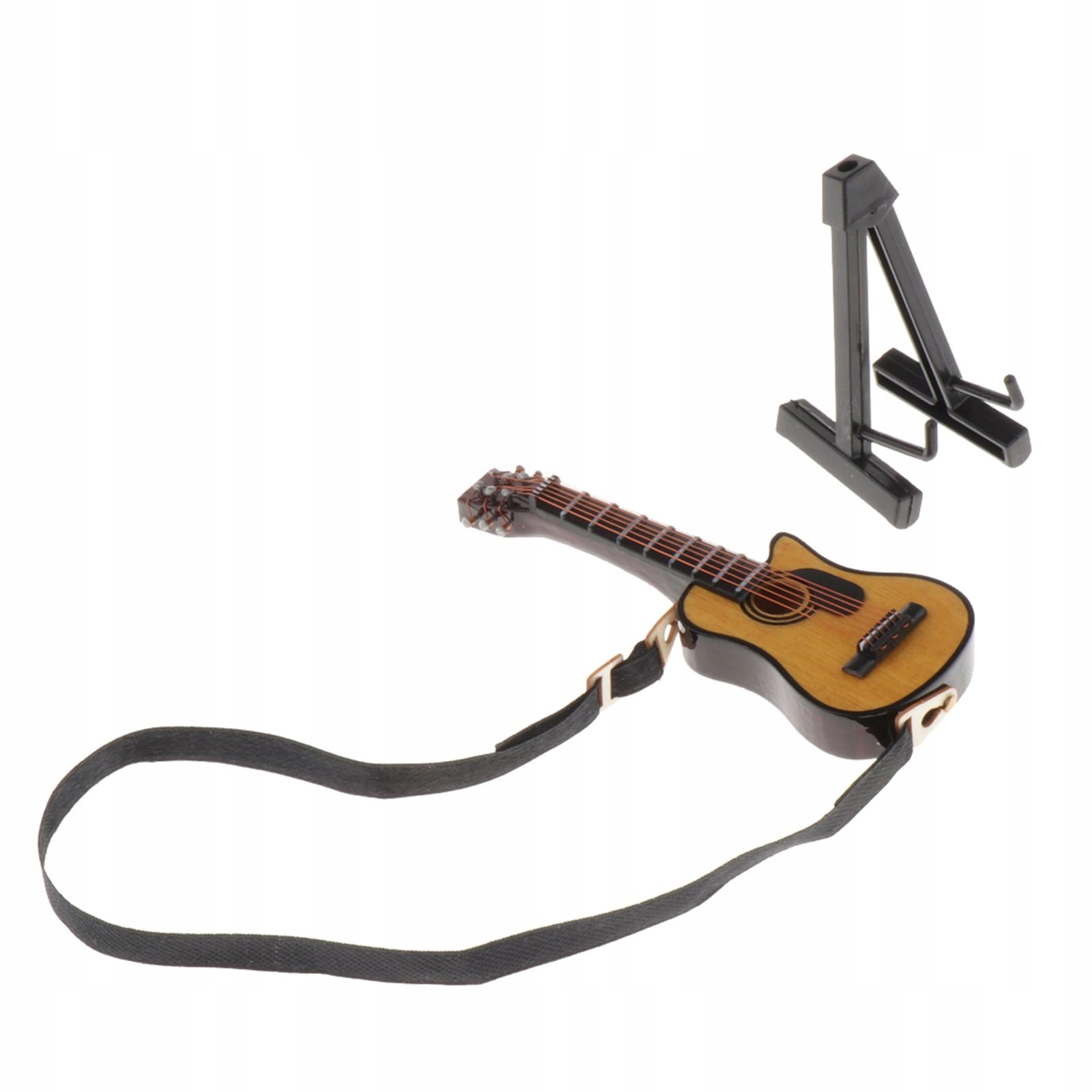 Масштаб 1/12, миниатюрная модель музыкального инструмента, деревянная гитара ручной работы с ремешком на подставке