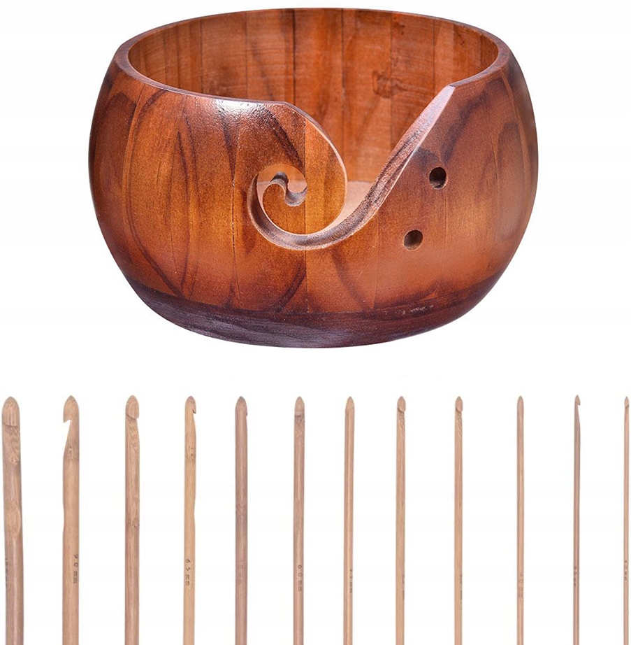 Деревянная миска для вязаной пряжи с 12 шт. Деревянное вязание крючком