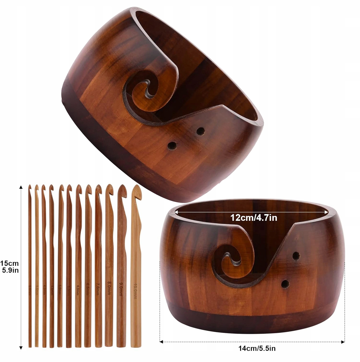 🥢🥢🥢 【Информация о размере】 Чаша имеет диаметр примерно 6 дюймов и высоту 3 дюйма, что обеспечивает достаточно места для 1 или 2 мотков. пряжи при вязании; 12 крючков разных размеров: примерно 3 мм, 3,5 мм, 4 мм, 4,5 мм, 5 мм, 5,5 мм, 6 мм, 6,5 мм, 7 мм, 8 мм, 9 мм, 10 мм, размер указан на сайте. каждая игла.