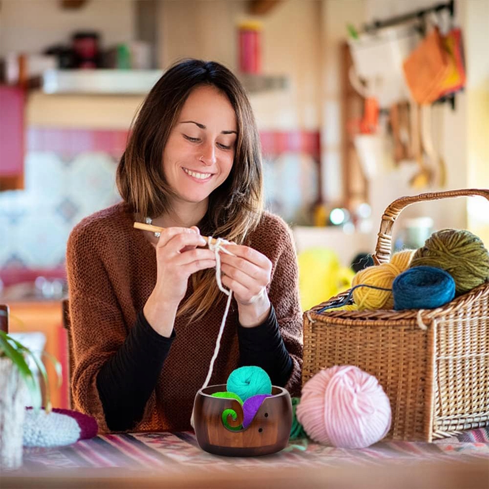 ⭐Переносной: 1 деревянная миска для пряжи с крышкой, 12 крючков разных размеров. Переносная миска для пряжи для удобного вязания крючком в любое время и в любом месте.