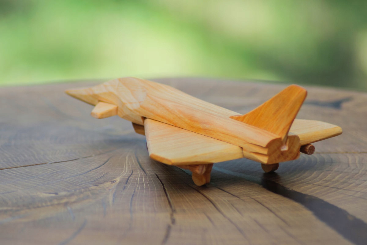 Самолет окрашен натуральным льняным маслом - масло защищает от загрязнений, сохраняет и усиливает текстуру древесины.