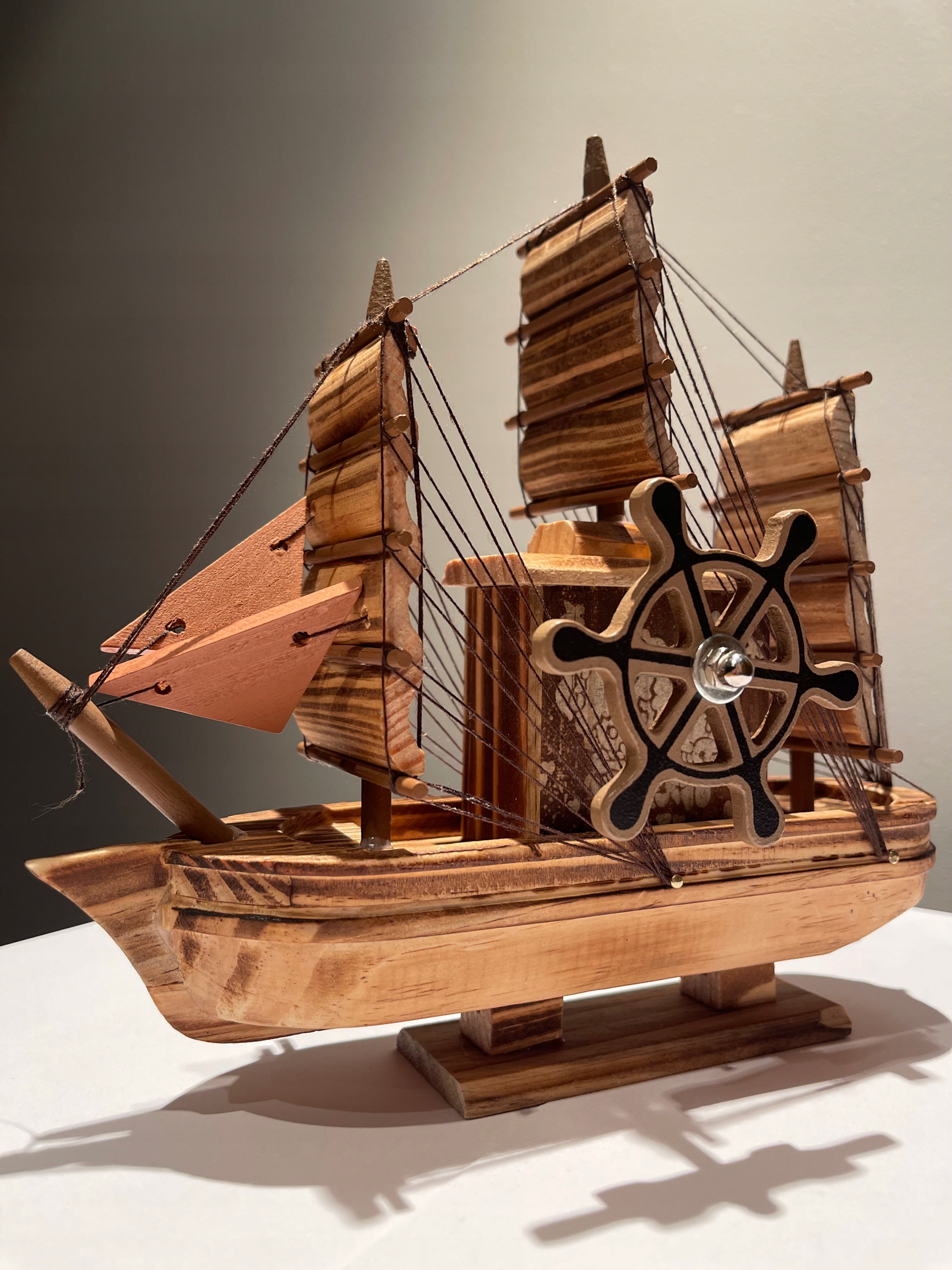 Предмет продажи — модель/фигурка корабля из дерева.