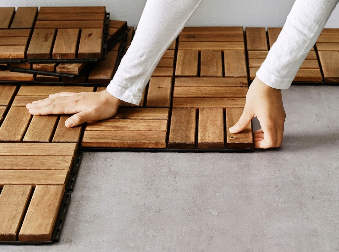 Устали от холодного и твердого бетонного пола. на балконе? Эта плитка из дерева акации сделает пол вашего патио, прачечной, ванной комнаты, теплицы и балкона элегантным и удобным для ваших ног.
