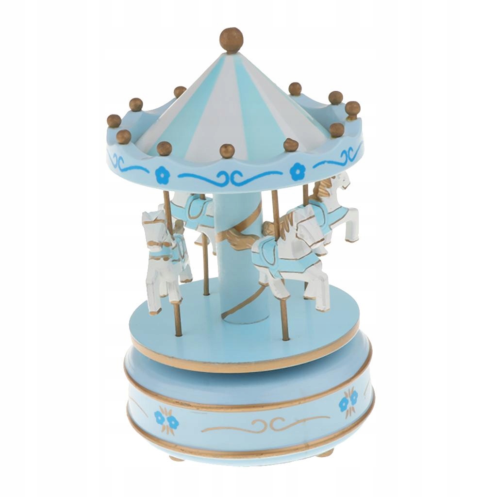 Дерев'яна музична шкатулка-карусель, обертова механічна музична карусель синього кольору