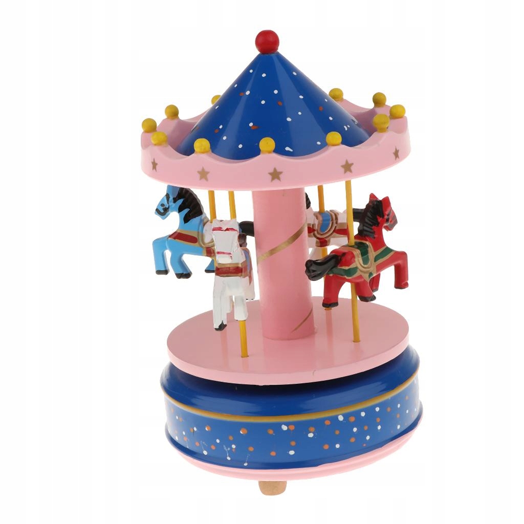 Дерев'яна музична шкатулка карусель синьо-рожева