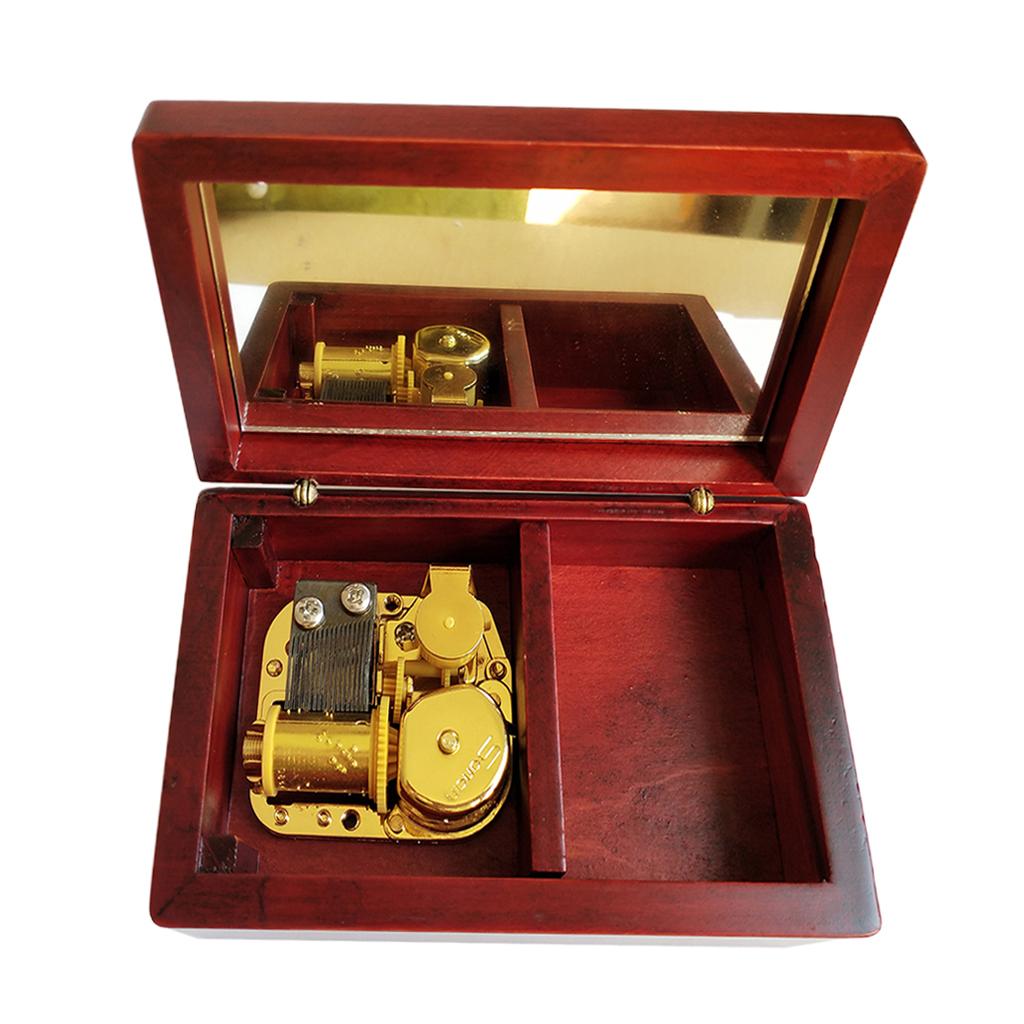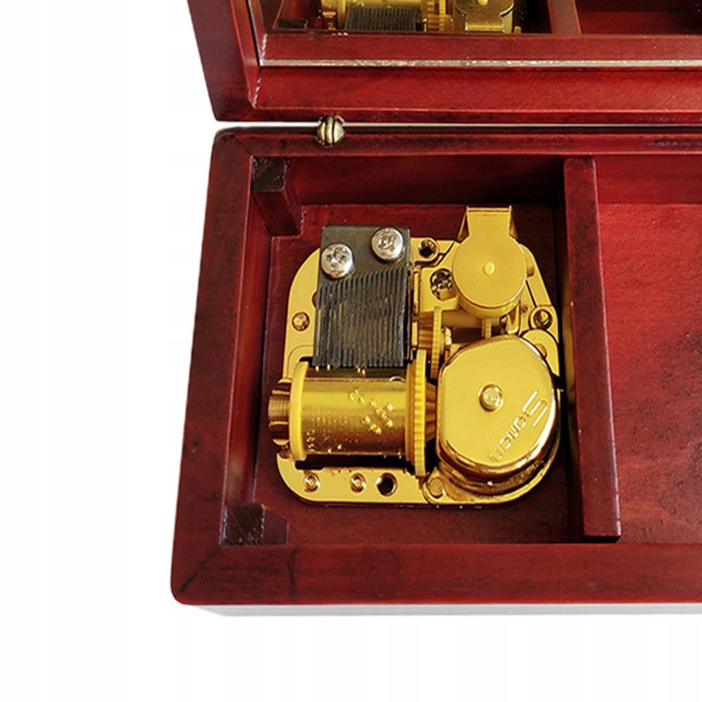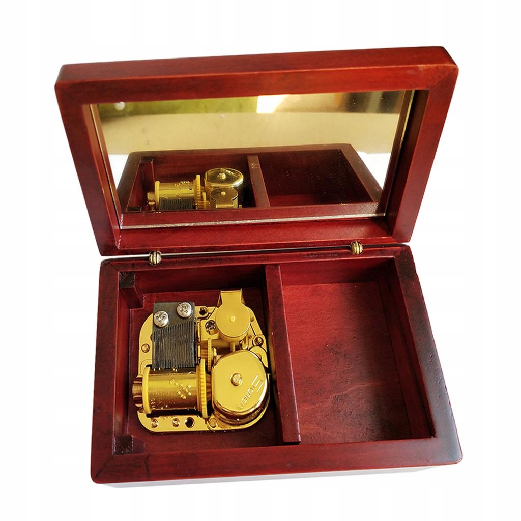 Дерев'яна музична шкатулка з годинниковим механізмом, червона шкатулка для прикрас
