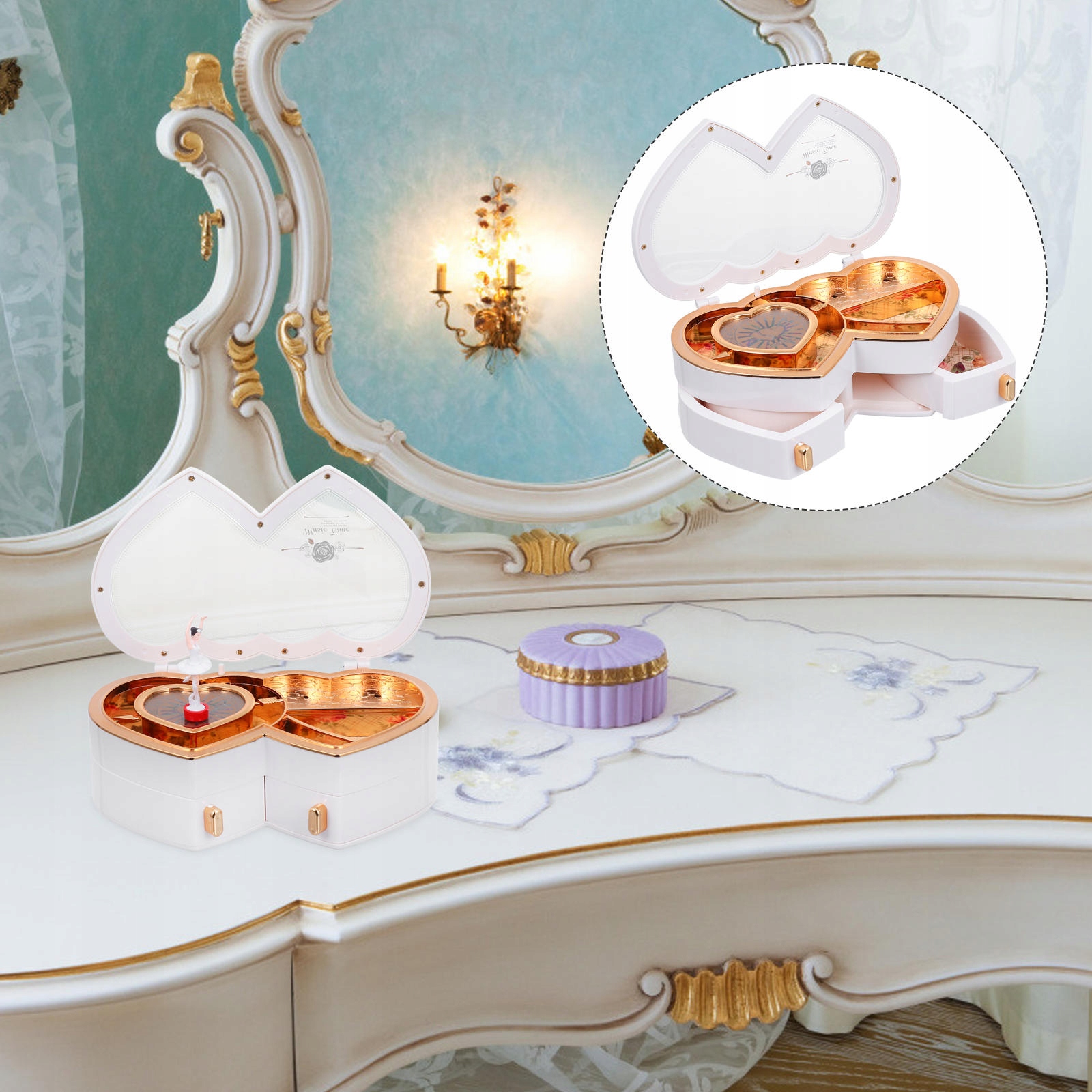 ✅Эта белая музыкальная шкатулка для драгоценностей в форме двойного сердца — отличный декор, который можно использовать для размещения небольших предметов. ювелирные изделия