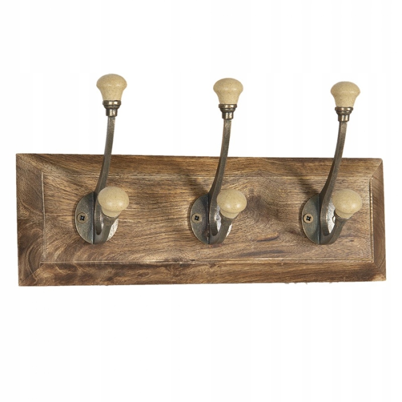 Деревянная настенная вешалка с 3 крючками бежевого цвета Isabelle - 30x7x10 см