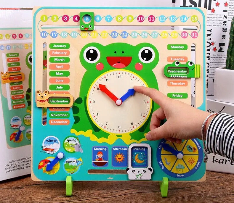 Деревянная образовательная доска лягушка Learning Игрушка Календарь Календарь Погода