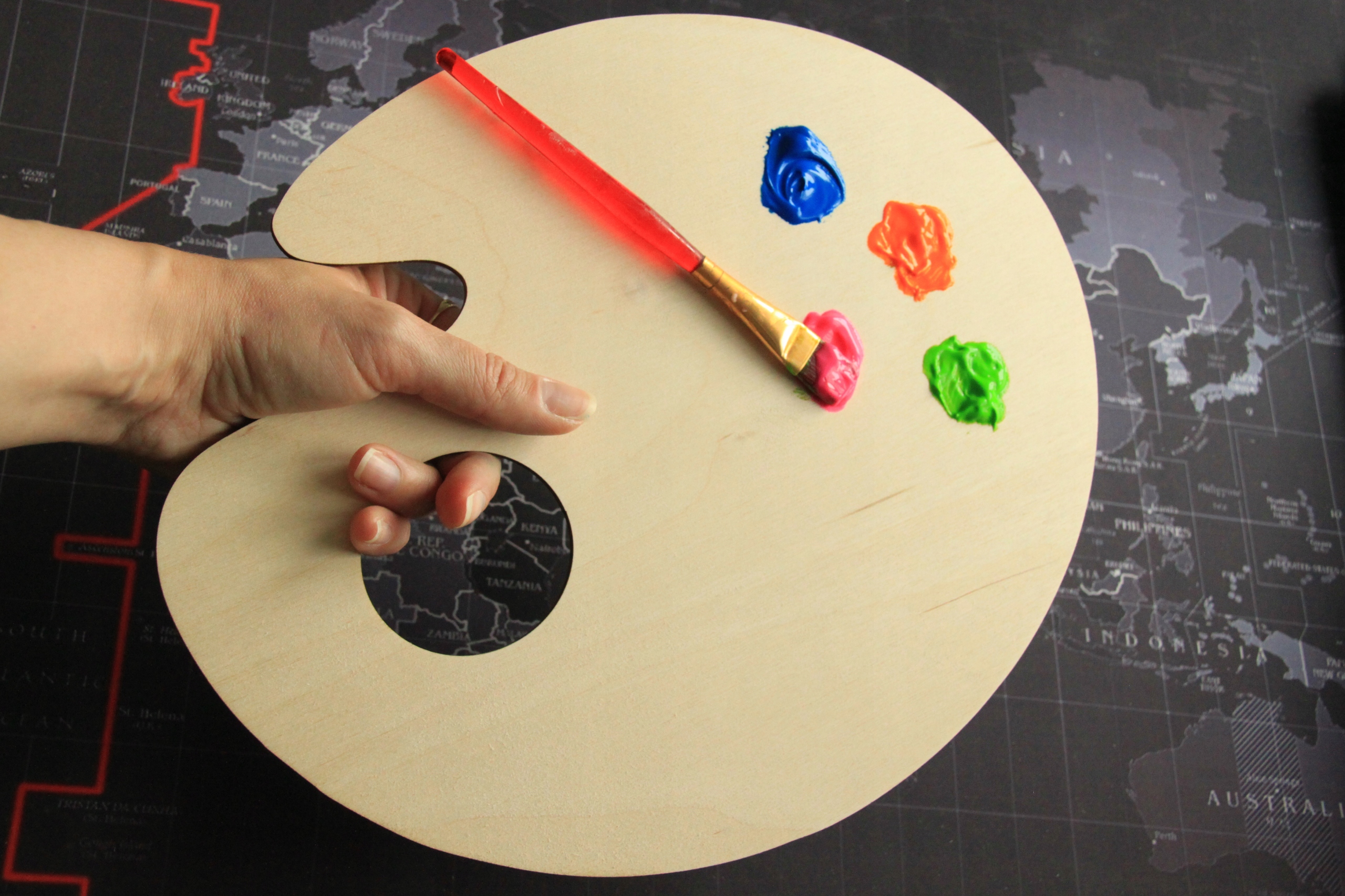 Деревянные поддоны поддоны для тяжелых и густых красок, изготовленные из деревянной фанеры. Они устойчивы к краске и воде. Они не деформируются под воздействием влаги. Они используются для смешивания масляных, акриловых и темперных красок. Овальная палитра для рисования имеет отверстие и профилировку, благодаря которой она удобно лежит в руке. Эти деревянные аксессуары используются в образовательных и профессиональных целях.