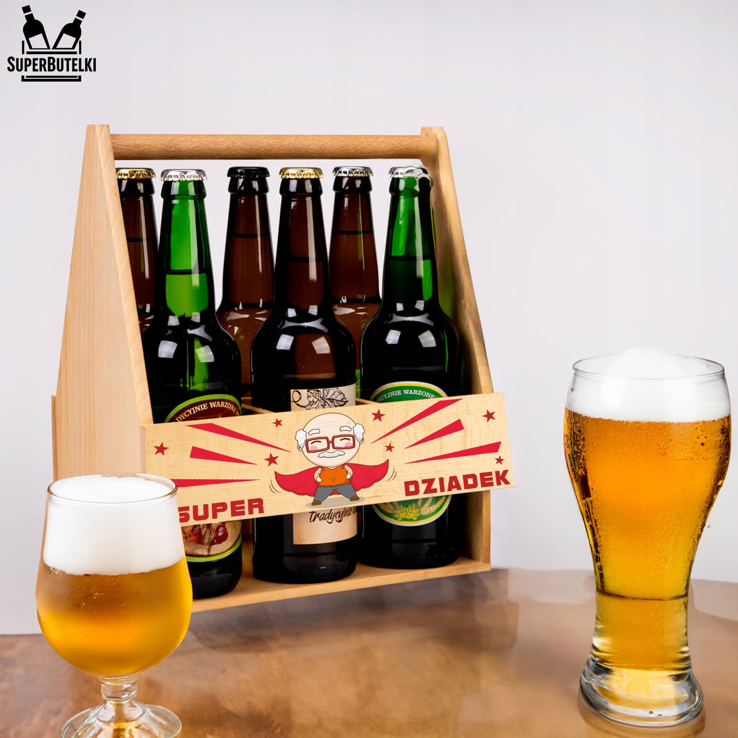 ДЕРЕВЯННАЯ ЧЕРТЕЖКА ДЛЯ ПИВА ШЕСТЬ ПАКОВ В ПОДАРОК БАБУШЕ И ДЕДУШКЕ НА ДЕНЬ РОЖДЕНИЯ
