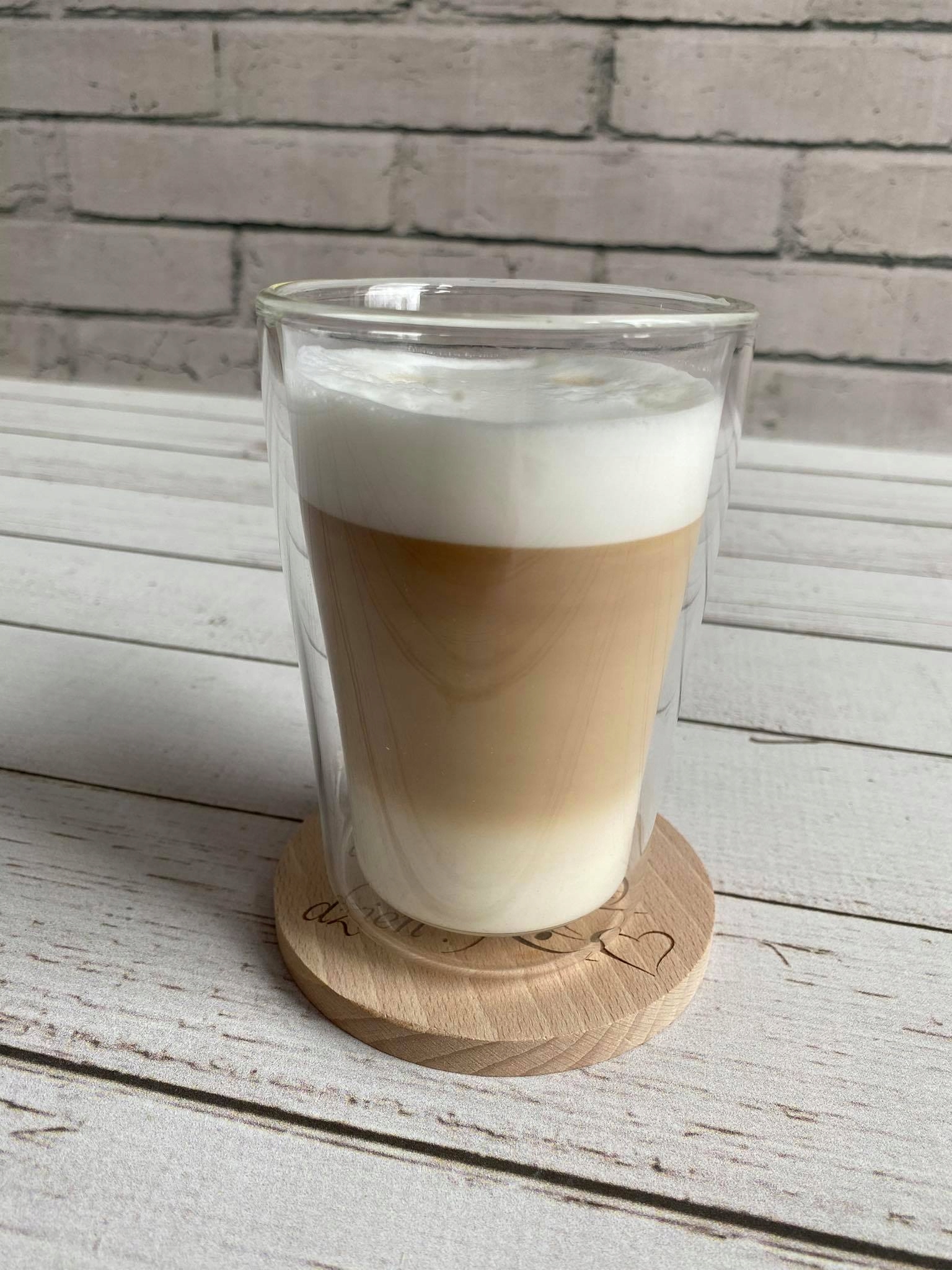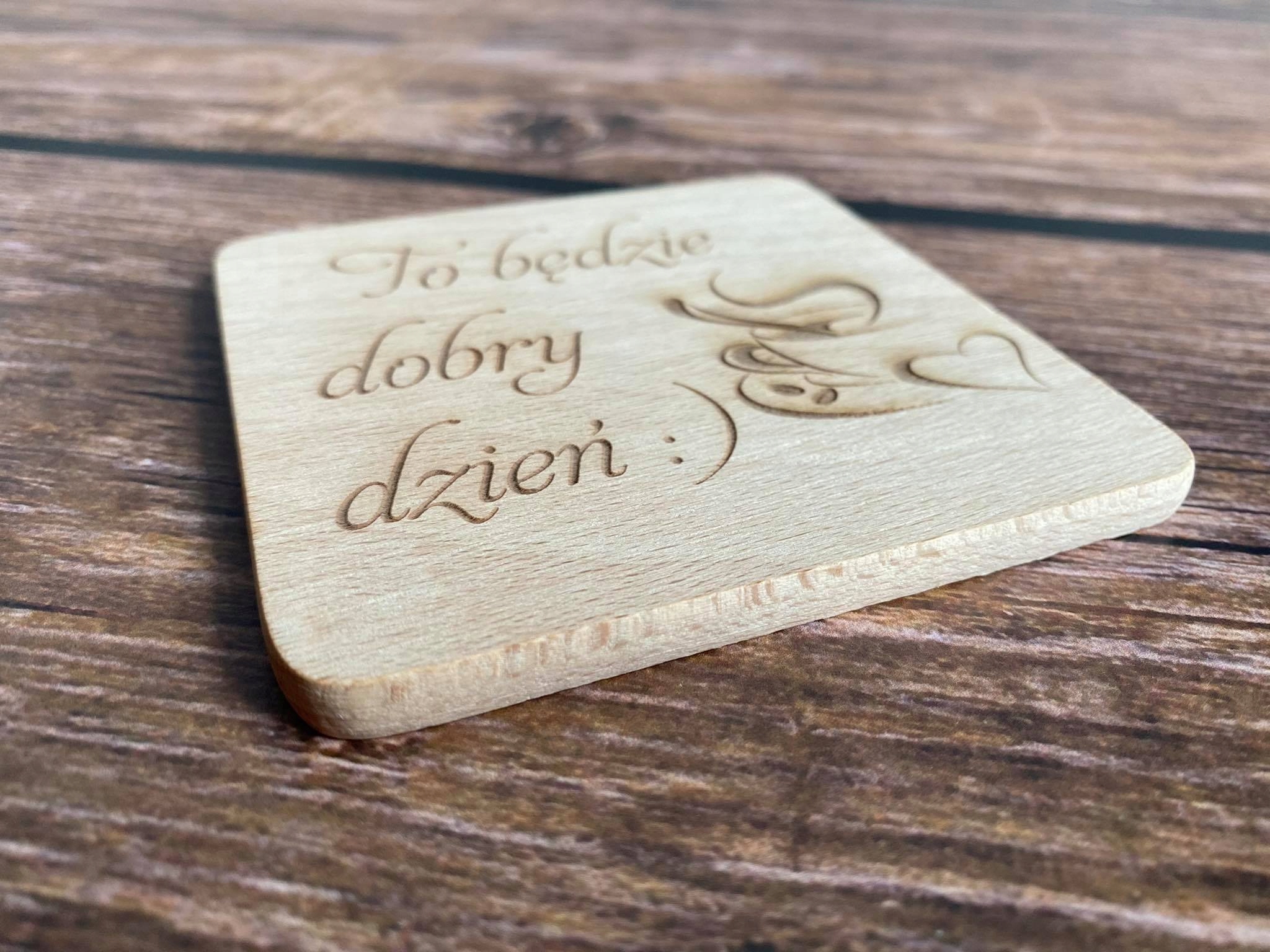 Деревянная подставка с надписью «Будет хороший день :)» плюс рисунок кофе