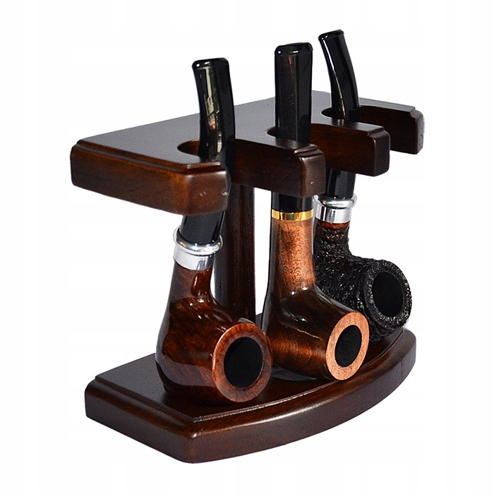 Стильная и практичная подставка на три трубки из качественного дерева. Прекрасно отображает вашу коллекцию трубок, обеспечивая при этом безопасное место для их хранения. Текстура натурального дерева и классический темно-коричневый цвет придают всему этому элегантный характер и станут прекрасным дополнением к офису или гостиной.