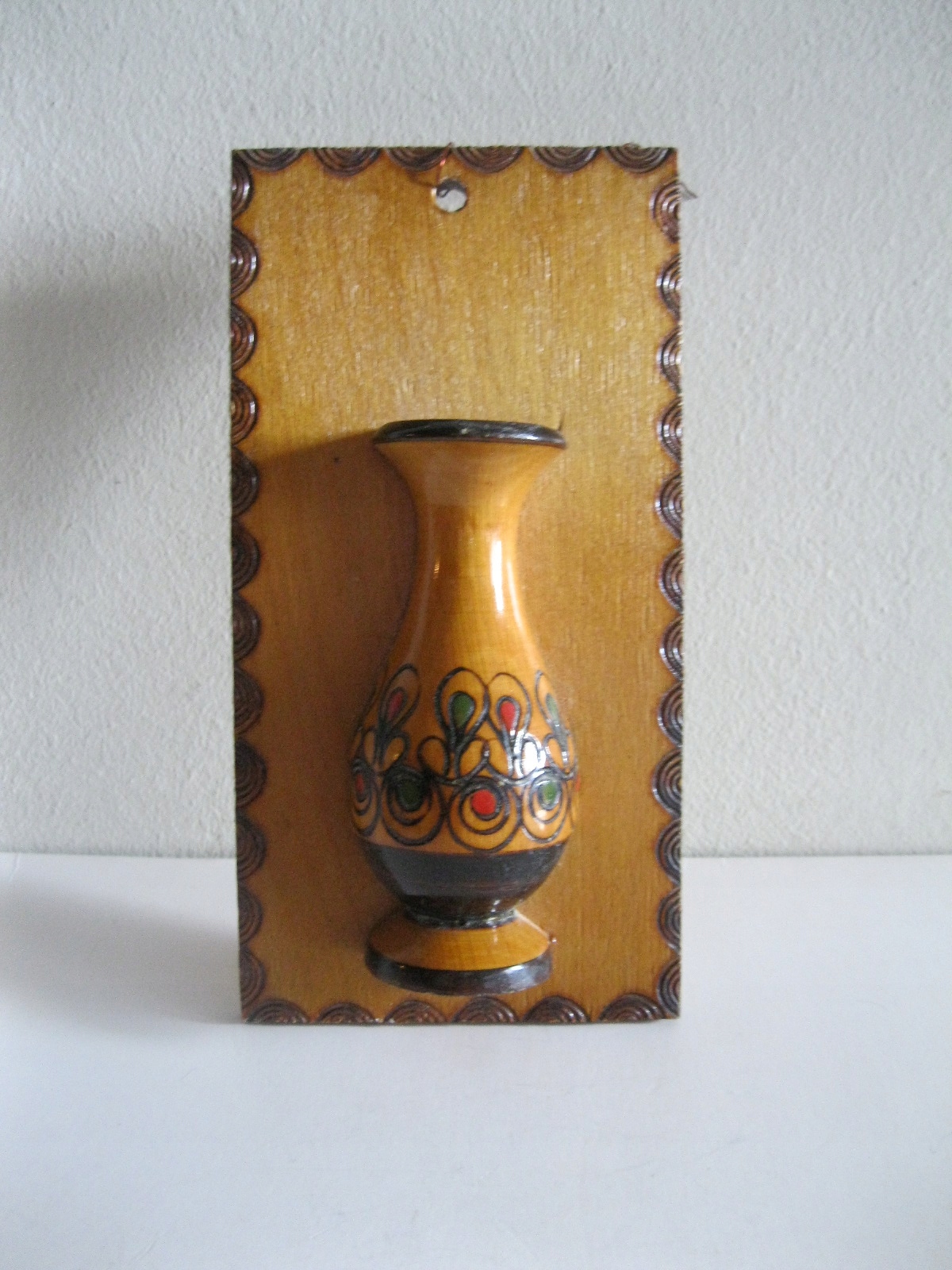 ДЕРЕВЯННАЯ ПОДВЕСНАЯ ВАЗА, БРУЖКИ ИЗ 1970-Х ГОДОВ - PRL