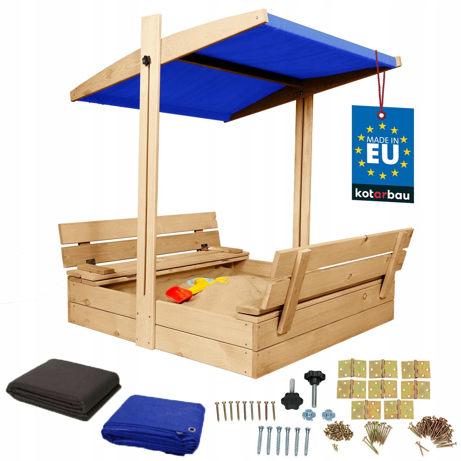 Песочницы оснащены двумя складными скамейками, которые в сложенном состоянии защищают песок от загрязнений , таких как листья, мусор или животные. Дополнительно они пропитаны экологическим препаратом, соответствующим стандарту EN71-3, что гарантирует высочайший уровень безопасности. Входящий в комплект изоляционный агротекстиль предохраняет песок от смешивания с почвой, дополнительно не дает прорваться растениям, что позволяет сохранять песочницу чистой в течение длительного времени. Брезент — идеальная защита песочницы от погодных условий. Он защищает от дождя, солнца и ветра, а также незаменим зимой.