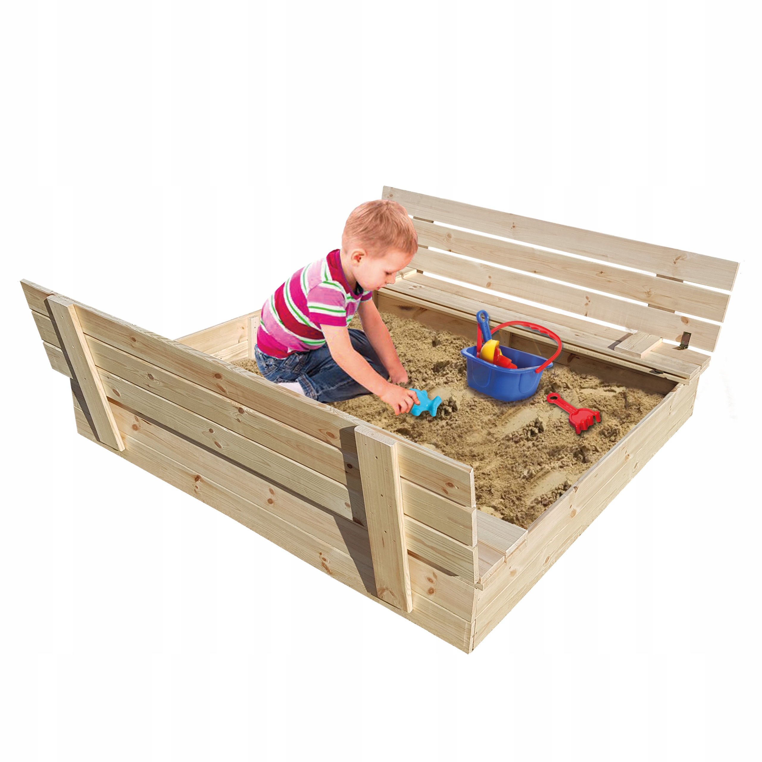 Большая песочница Преимущество нашего Возможно собрать песочницу со скамейками, чтобы создать крышку, таким образом закрывая песочницу.