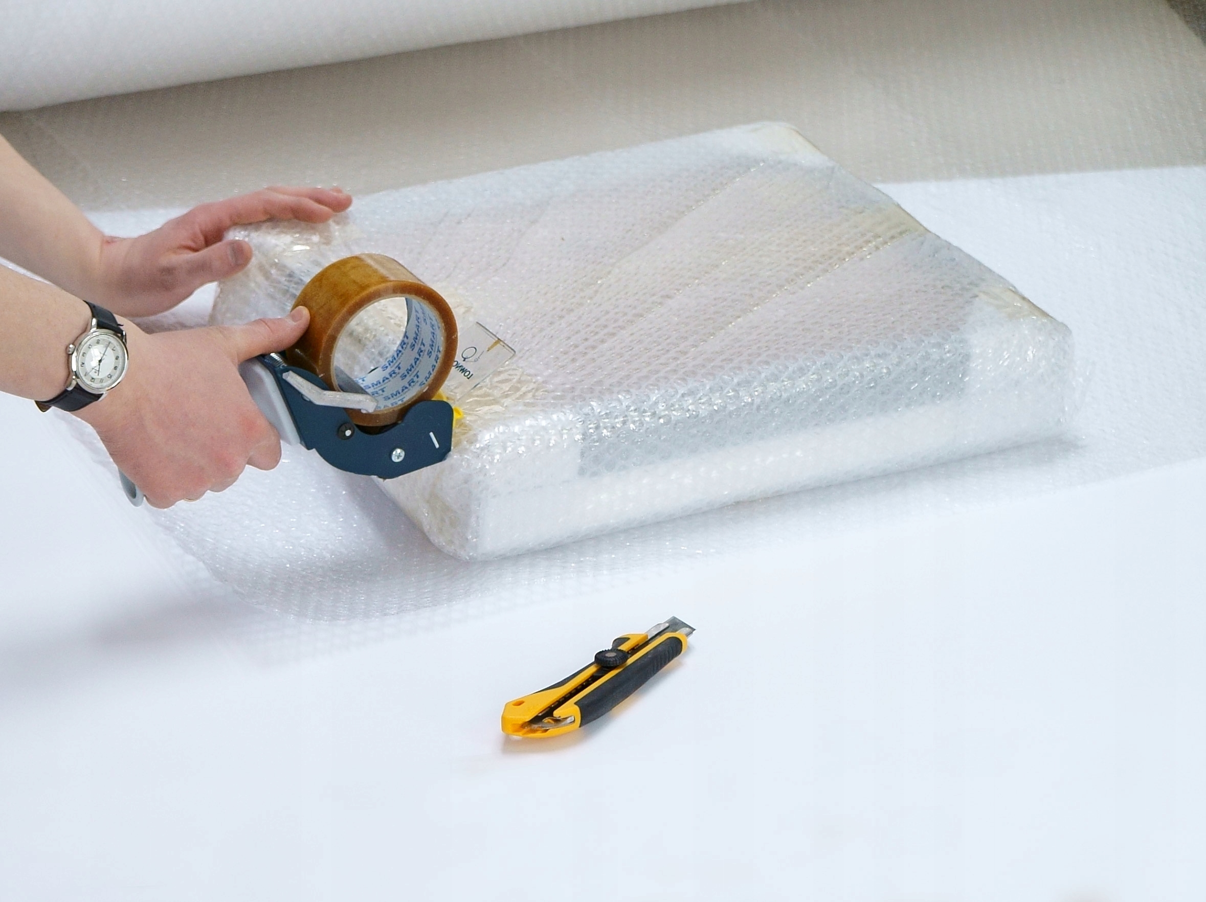 - Каждую рамку мы оборачиваем толстым слоем блистерной фольги, стараясь тщательно ее закрепить. Полный заказ мы упаковываем в логистические коробки из высокопрочного картона и дополнительно наполняем наполнителем, дополнительно амортизирующим продукт изнутри.