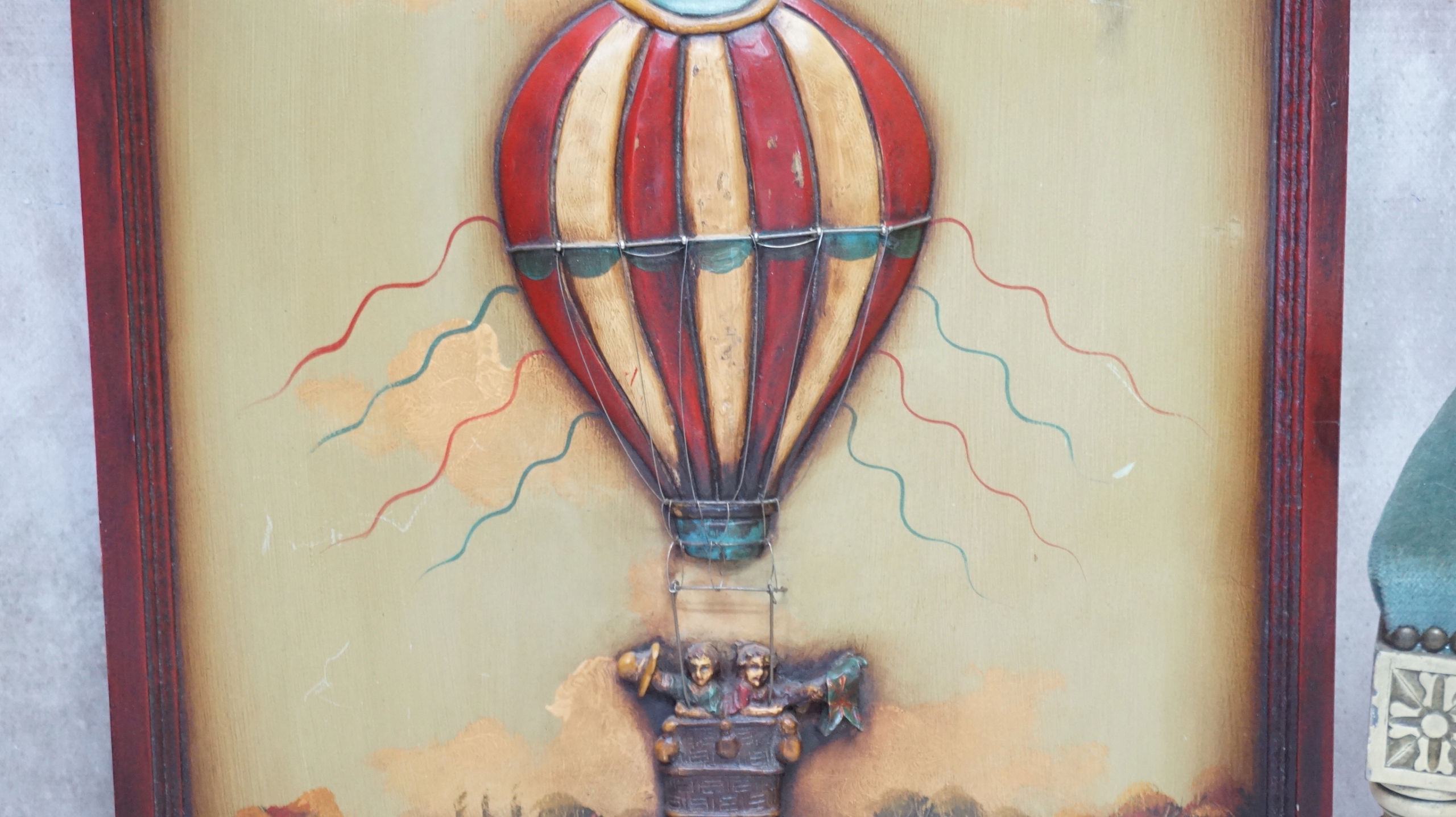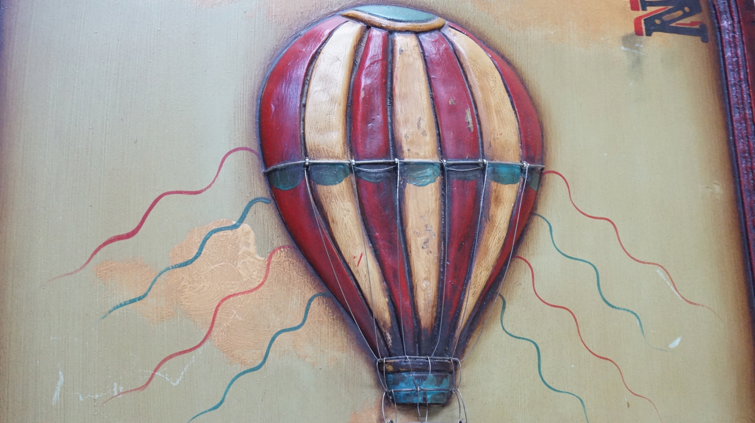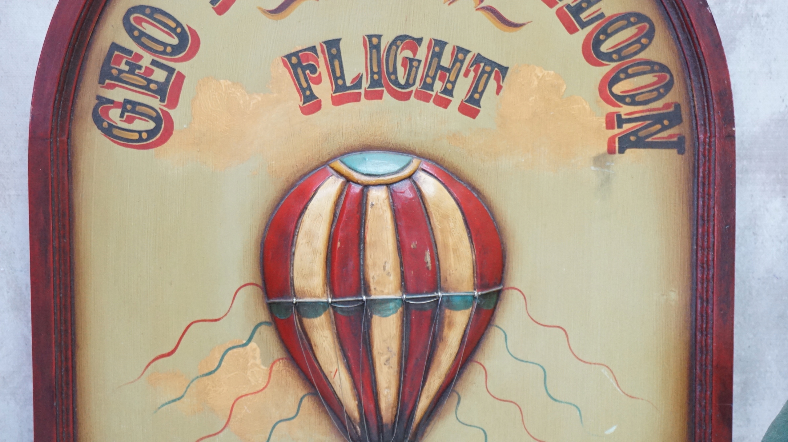 большой деревянный рекламный щит с трехмерным воздушным шаром