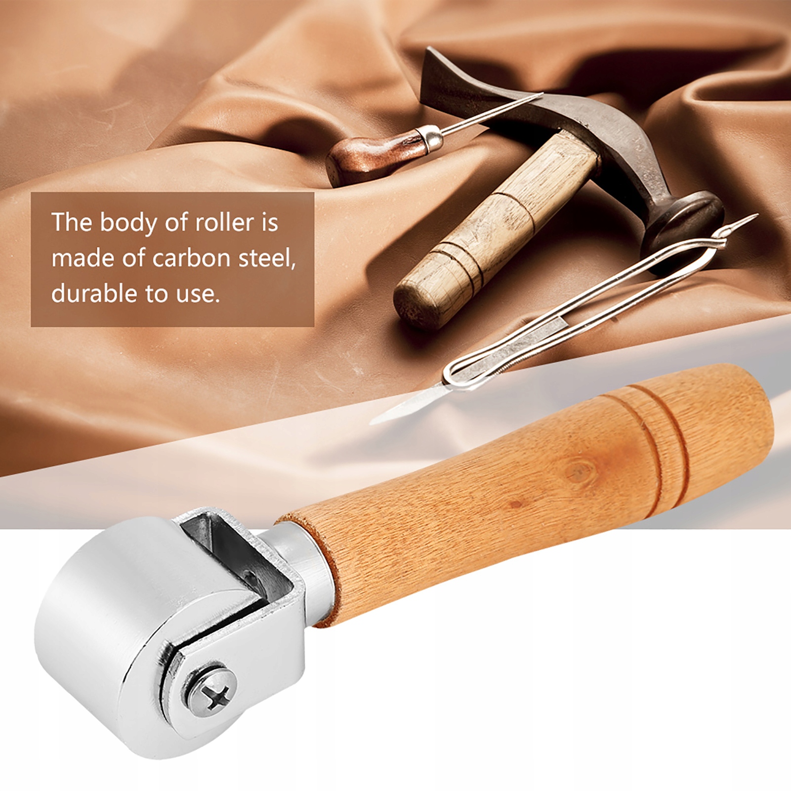 Деревянная ручка кожаная ремесленная ролика 2,6 см угольная сталь
