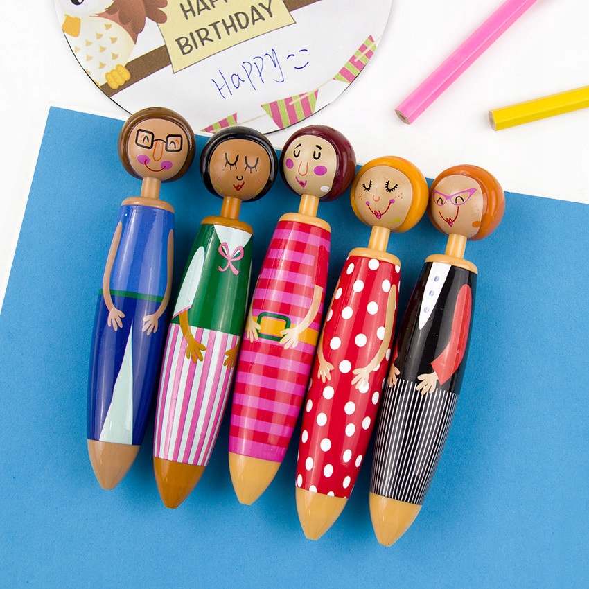 Интересная ручка – отличная идея для уникального подарка. Выделитесь из толпы и полюбуйтесь красивой красочной ручкой в форме деревянной куклы.
