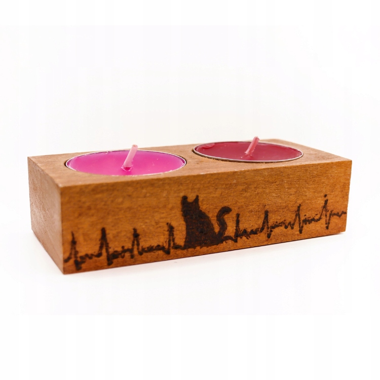 Деревянная ручная подсвечника - "Кошки и ЭКГ" - ручная работа - Пирография