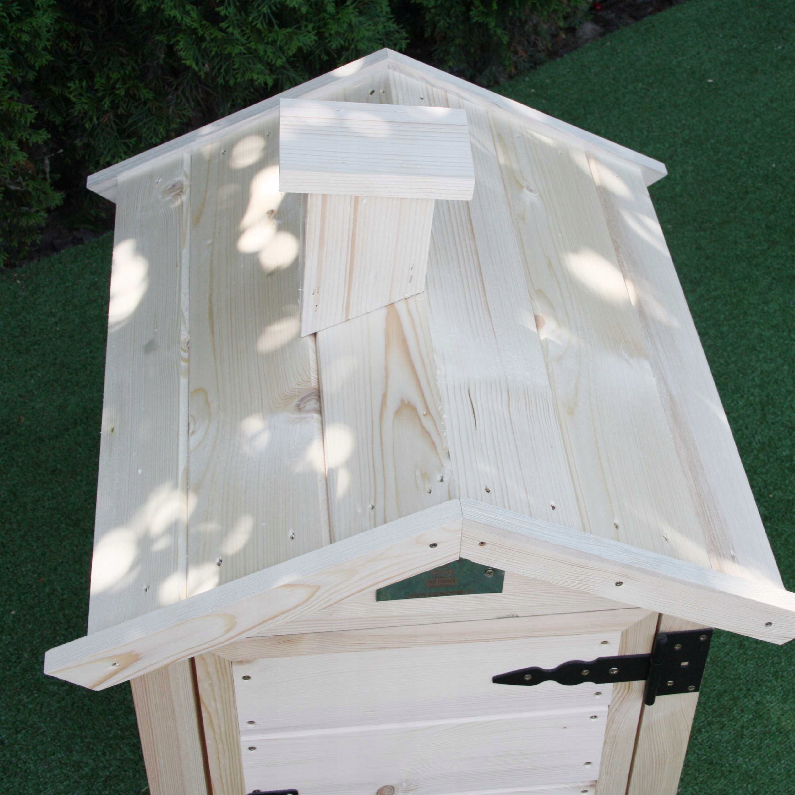 - КОПТИЛЬНУЮ КАМЕРУ С КРЫШЕЙ из доски (СКАНДИНАВСКАЯ ЕЛЬ) 20[ мм] (+/-2 мм) с размерами 50x50x80[см) с крышей и дымоходом
