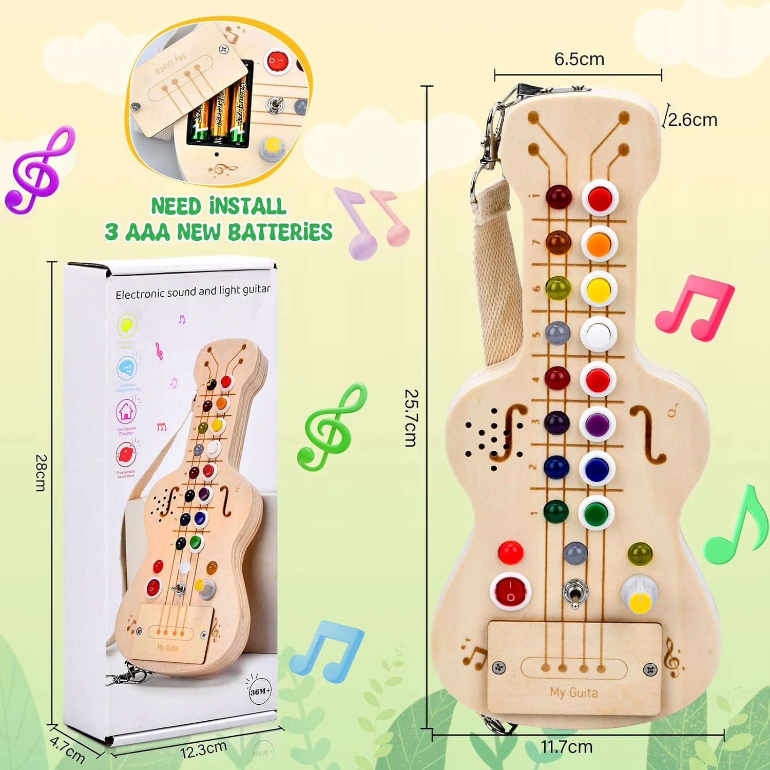 ДЕРЕВЯННАЯ СЕНСОРНАЯ ГИТАРА МОНТЕССОРИ С ВЫКЛЮЧАТЕЛЯМИ СВЕТА FUN