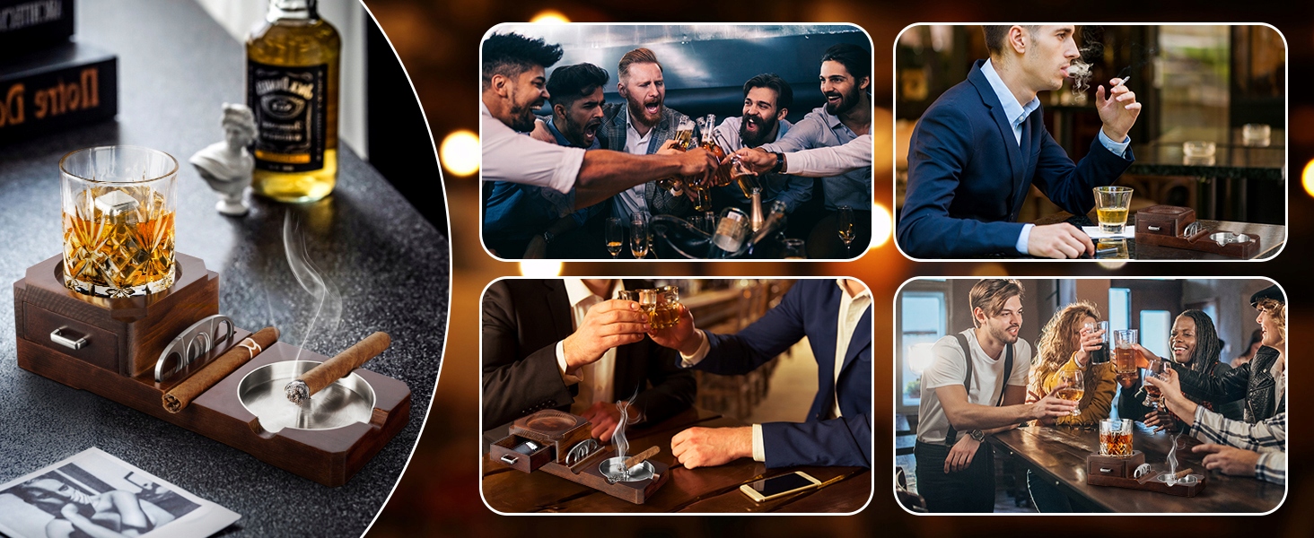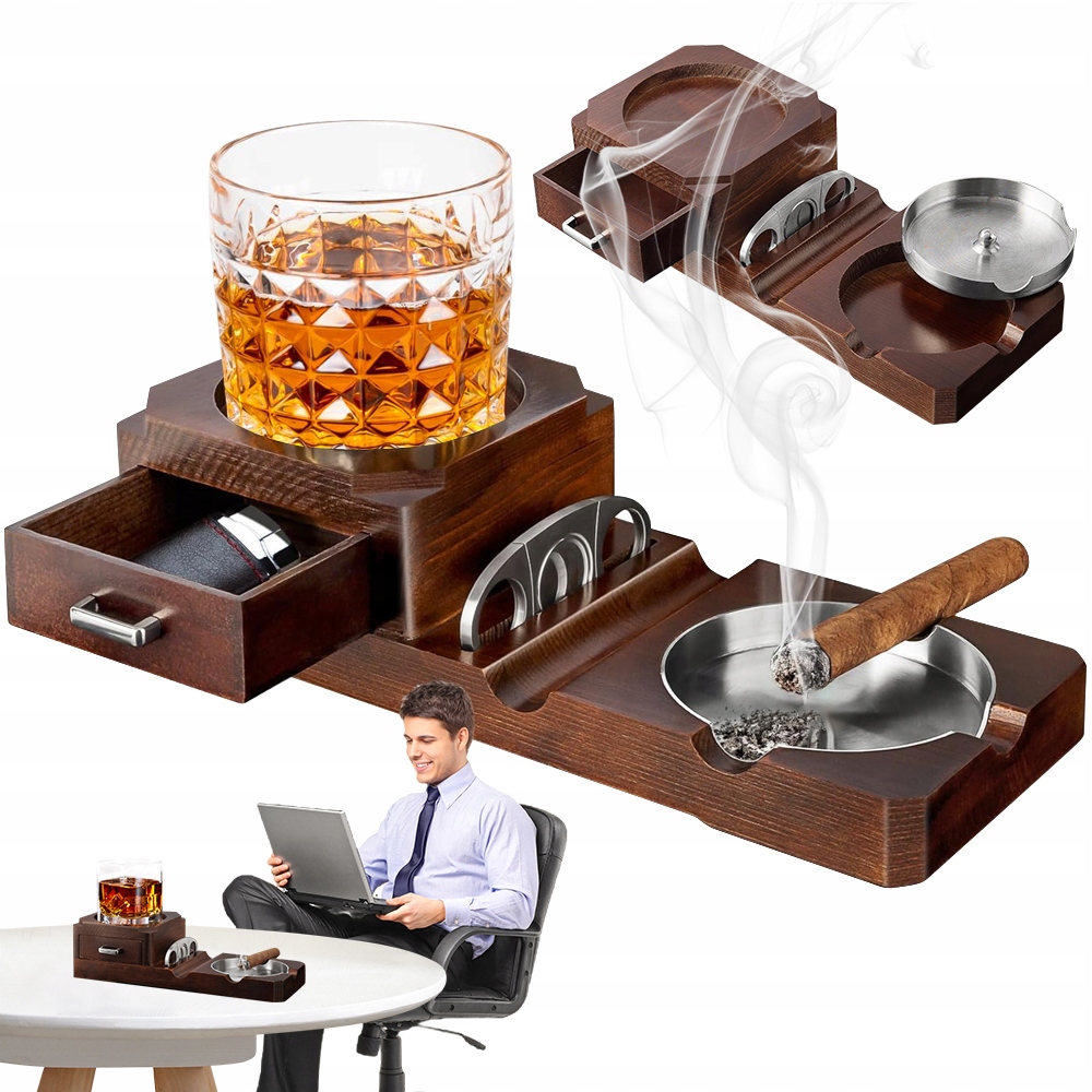 🏡 Деревянный поднос с пепельницей, подставкой и сигарной клипером для дома, офиса, бара, ресторана ›
