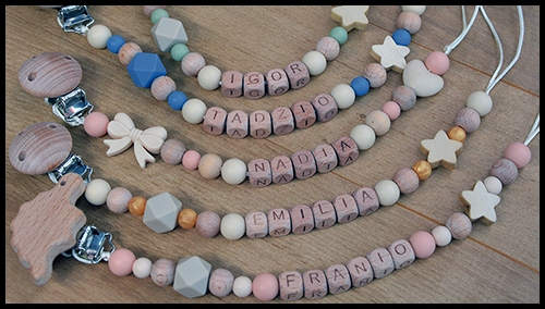Именованные вешалки для соски изготавливаются в нашей мастерской с особой тщательностью.