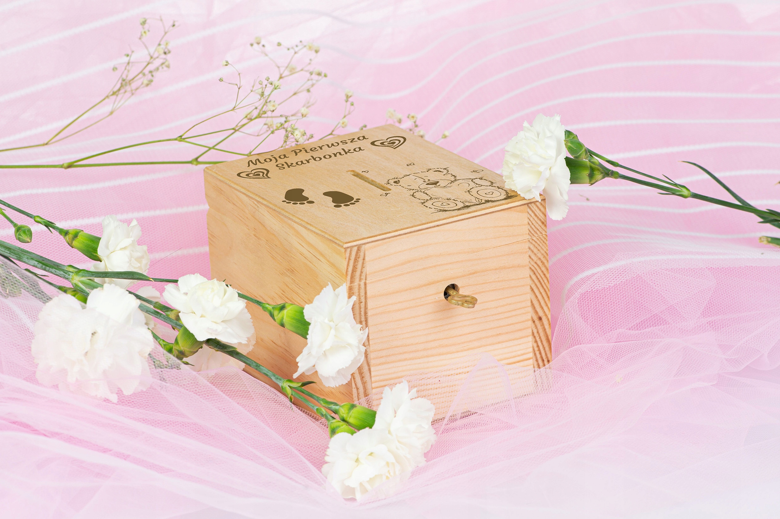 Представляем деревянную копилку в натуральном цвете с декоративной застежкой на ключ. Наш продукт прекрасно подойдет в качестве первой копилки для вашего ребенка и позволит ему накопить свои сбережения. Копилка также удобна, если мы хотим откладывать большие суммы денег для таких случаев, как свадьбы (собственные или свадьбы наших близких) или экзотические праздники. Оригинальный дизайн позволяет шкатулке вписаться практически в любой интерьер.