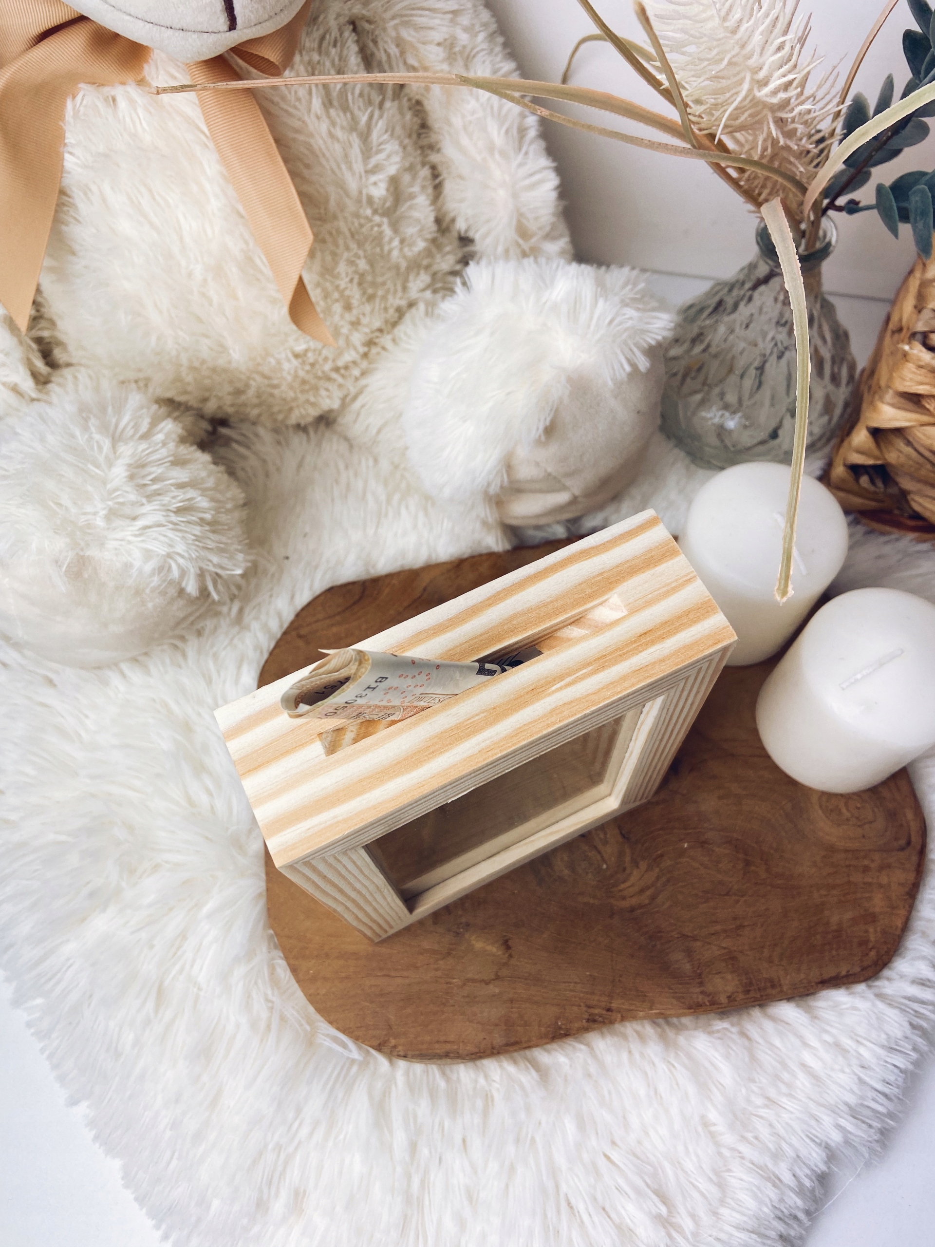 Идеальный подарок на рождение ребенка, подарок на крещение или подарок на день рождения ребенку, например, годовалый подарок. Копилка со стеклянным окошком, благодаря которому ребенок может контролировать количество собранных денег. Деревянную копилку можно повесить на стену, она станет уникальным украшением детской комнаты.