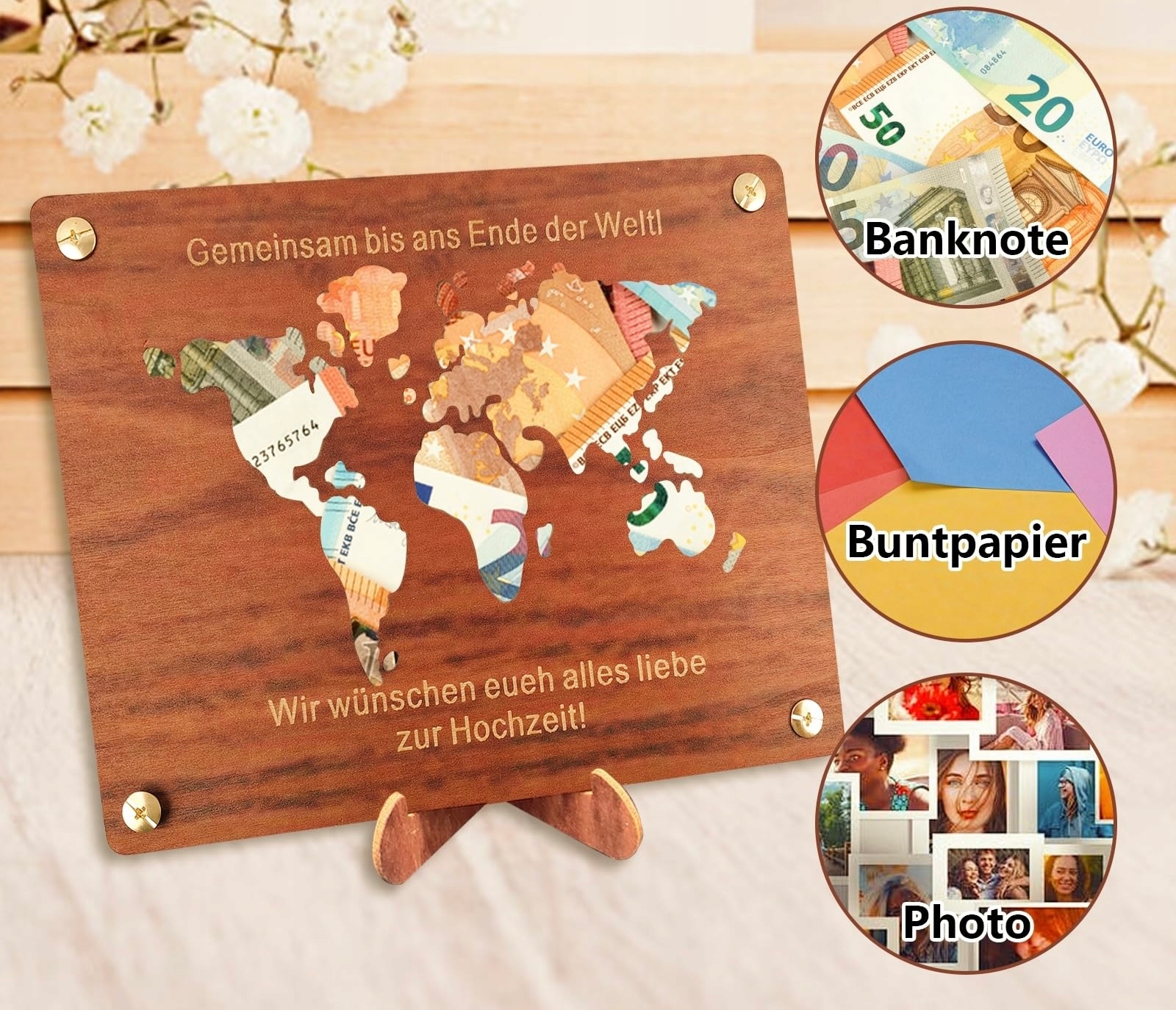 Инновационный денежный подарок. Наш денежный подарок в виде карты мира сочетает в себе две концепции: поздравительные открытки и подарочные деньги. Это практичный и продуманный подарок на свадьбу или день рождения. Идеально подходит для молодоженов в качестве запоминающегося и значимого подарка, напоминающего им об их особенном дне.