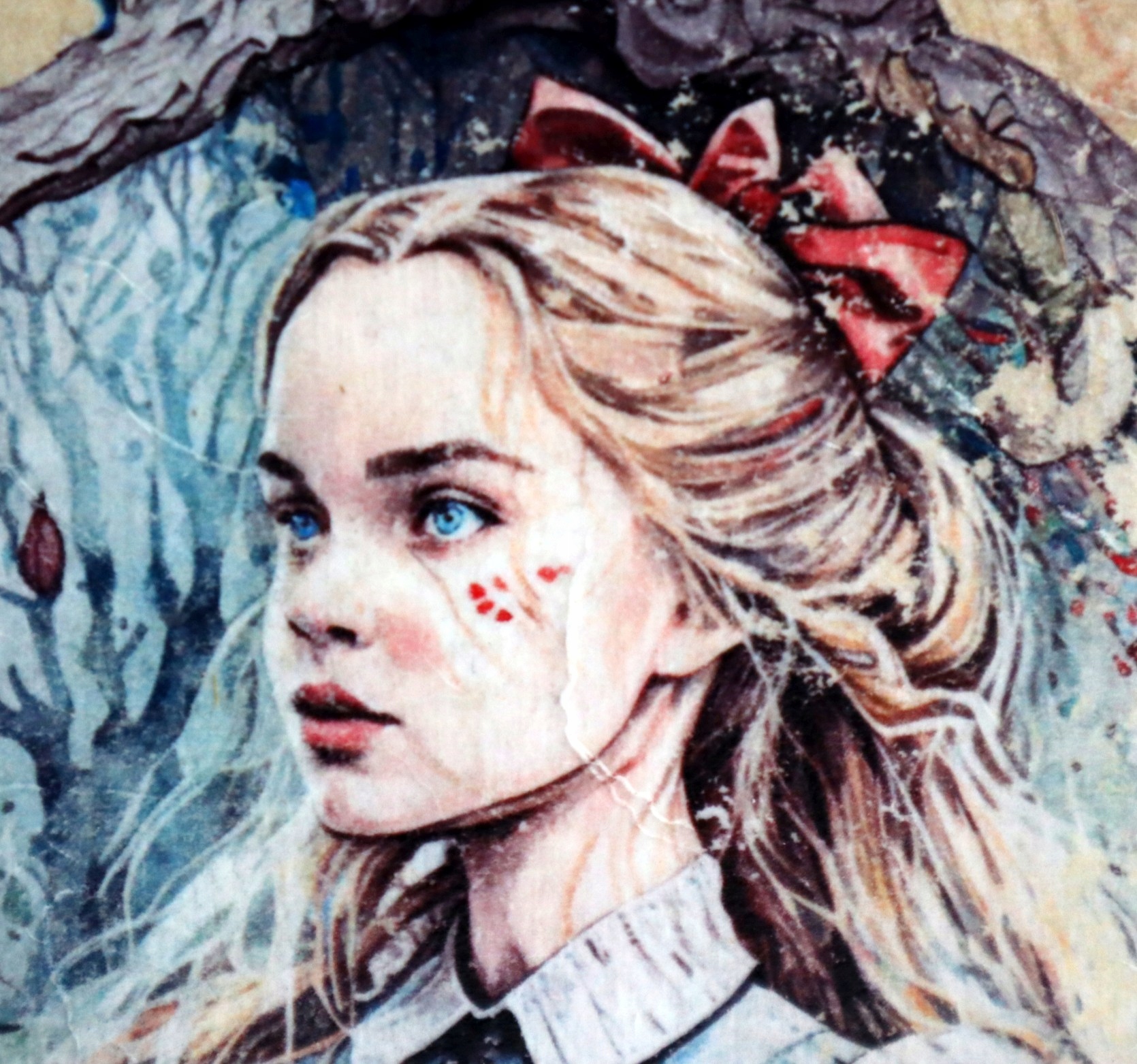 С первого взгляда вас очарует портрет девушки со светлыми волосами на обложке, напоминающий героиню из фильма «Алиса в стране чудес». Ее платье из прошлой эпохи и нежная розовая лента в волосах создают атмосферу волшебной истории.