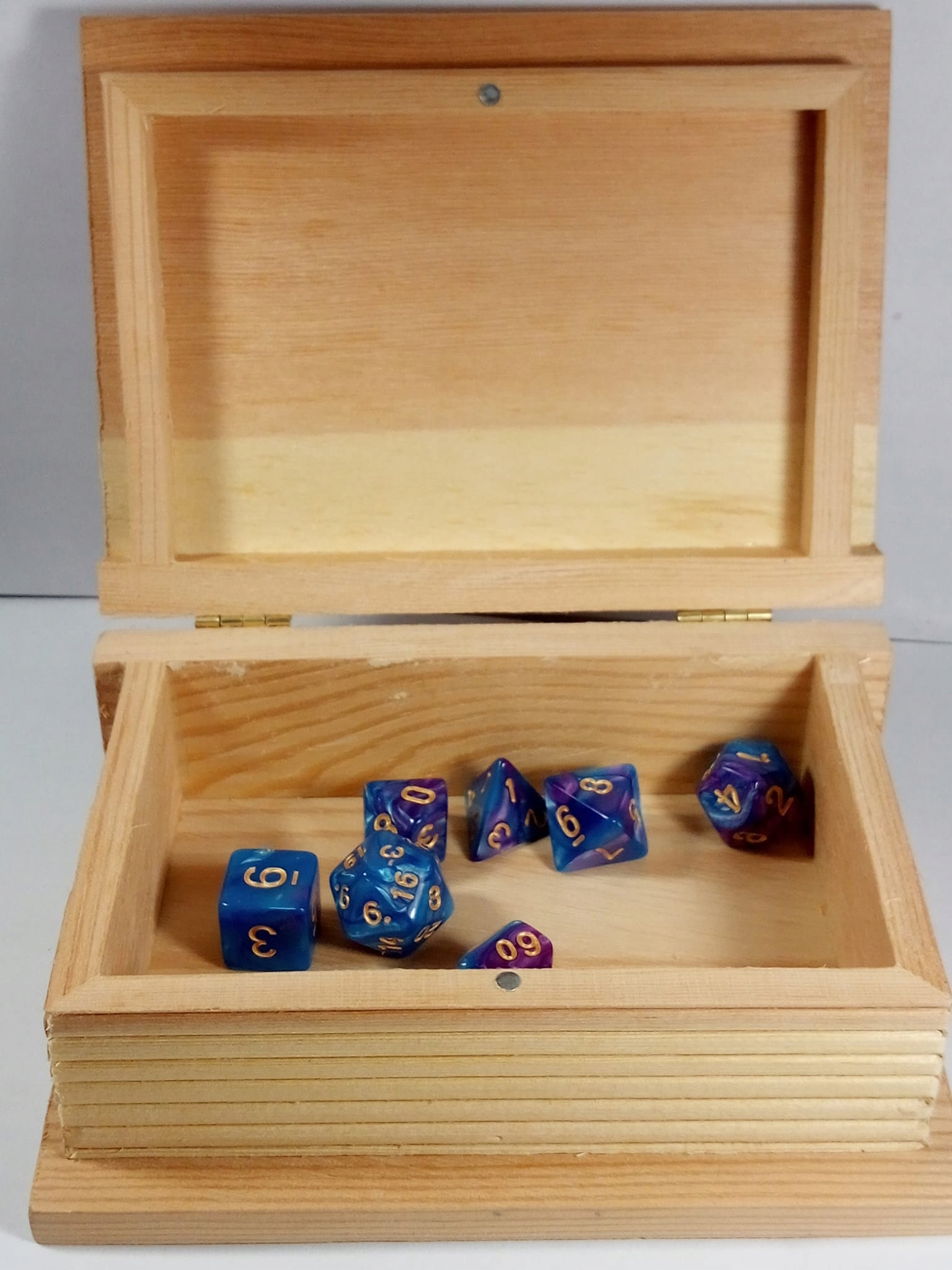 Красивая деревянная коробка в форме книги, идеально подходящая для удобной транспортировки или хранения игральных костей или других аксессуаров, например игровых фишек.