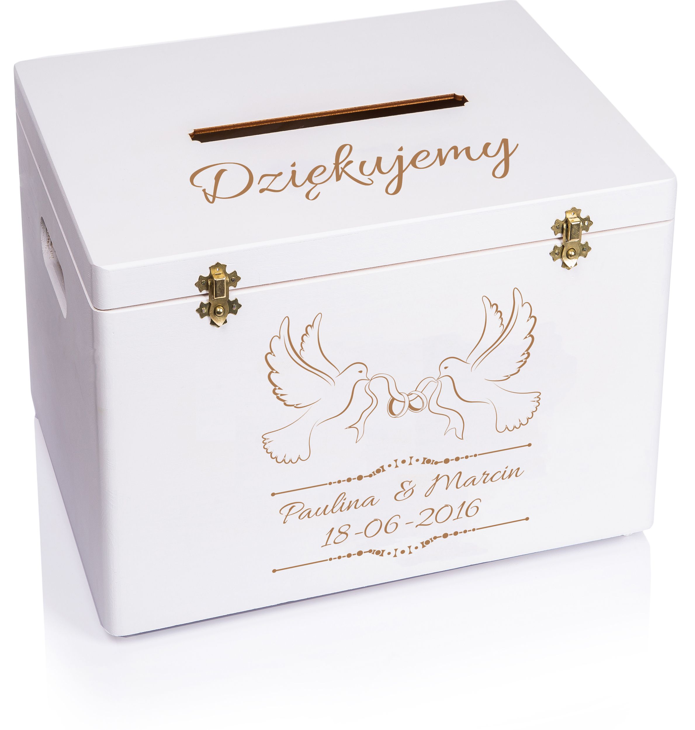 БЕЛАЯ КОРОБКА ДЛЯ СВАДЕБНЫХ КОНВЕРТОВ С ГРАВИРОВКОЙ