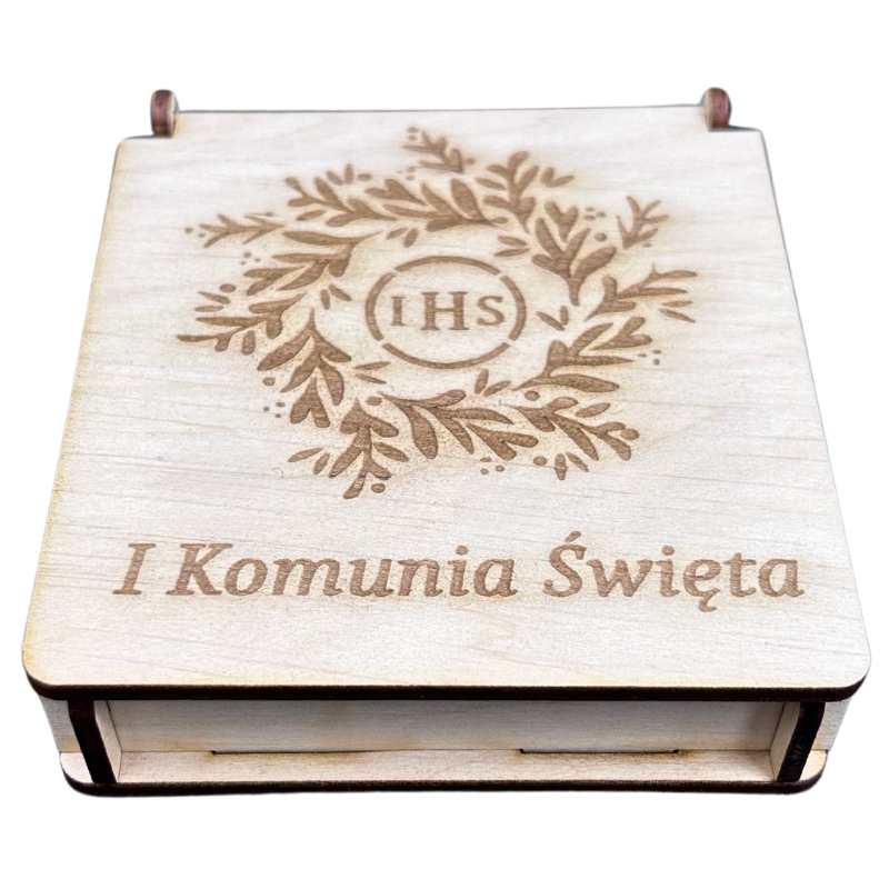 ДЕРЕВ'ЯНА Скринька для причастя IHS ПОДАРУНОК НА ПОДАРУНОК ГРОШІ ПРИЧАСТЯ