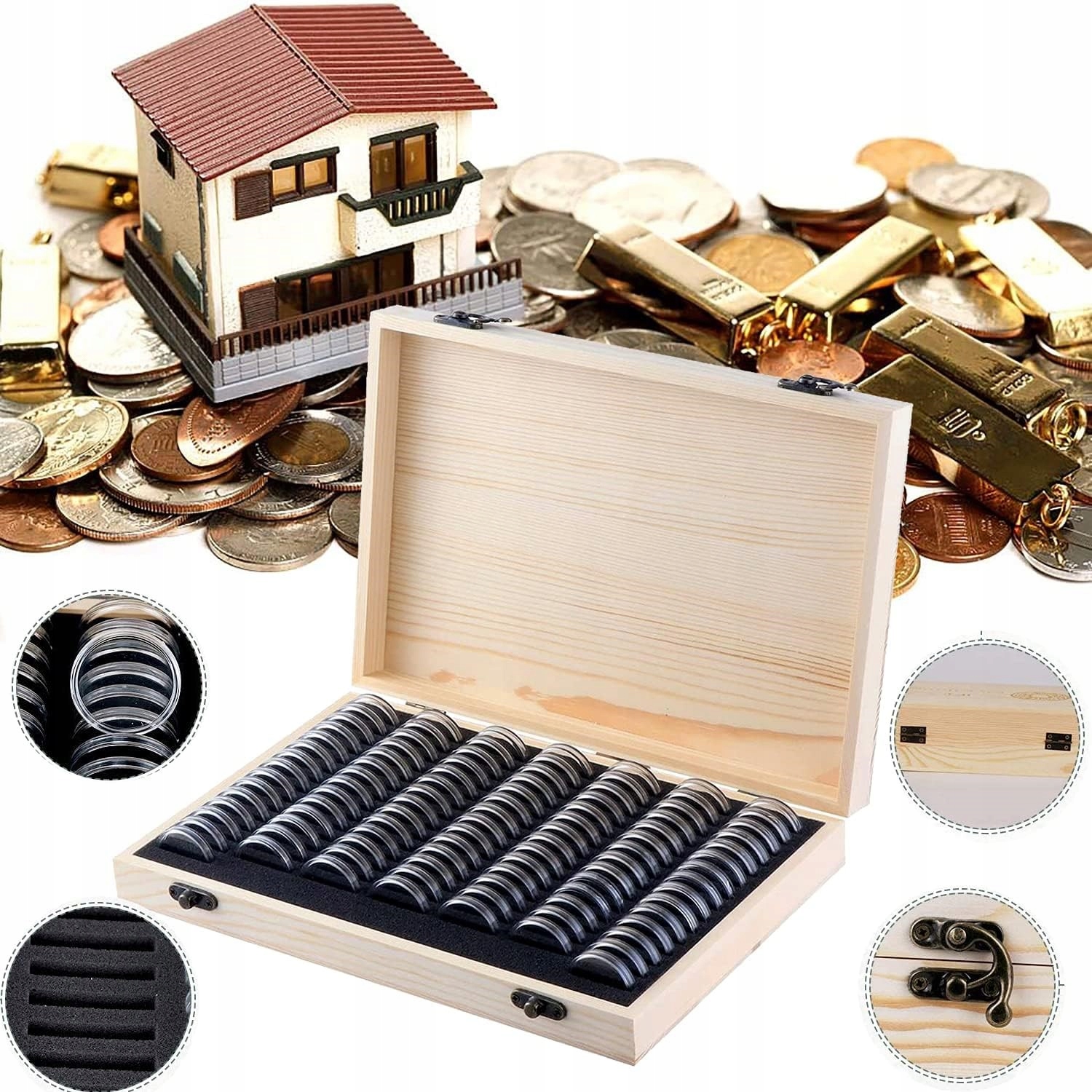 ДЕРЕВ'ЯНА Скринька для зберігання монет з круглими капсулами для монет