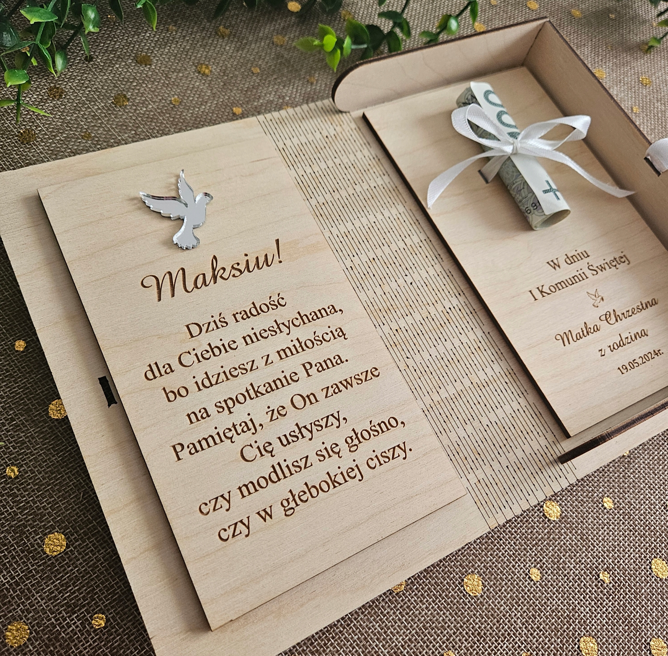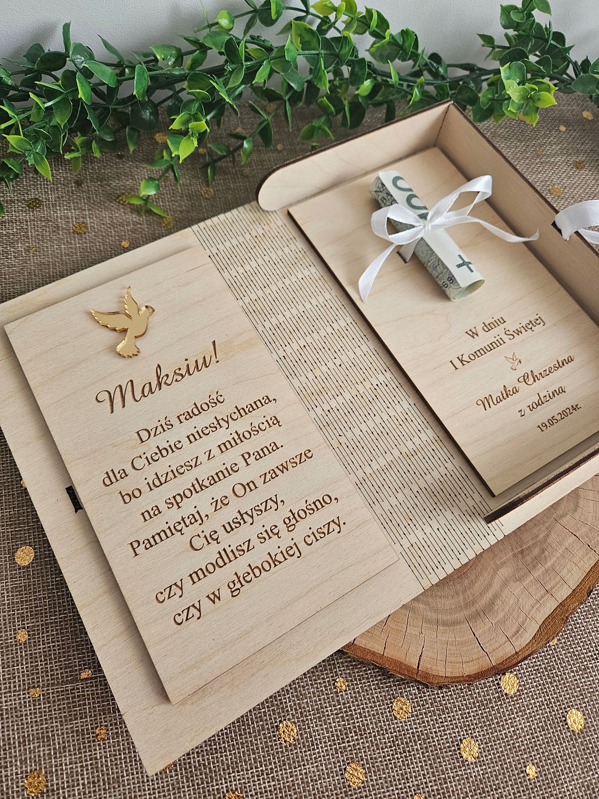 Деревянная шкатулка для денег или небольшого подарка – красивый, долговечный сувенир внаборе с индивидуальными пожеланиями.