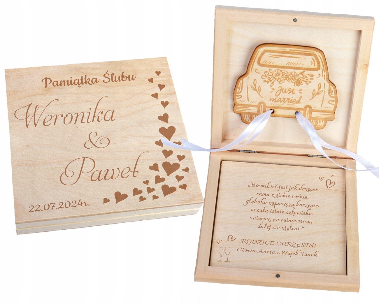 ДЕРЕВЯННАЯ КОРОБКА ДЛЯ СВАДЕБНЫХ СУВЕНИРОВ КОРОБКА С ПЕРСОНАЛИЗИРОВАННОЙ ГРАВИРОВКОЙ