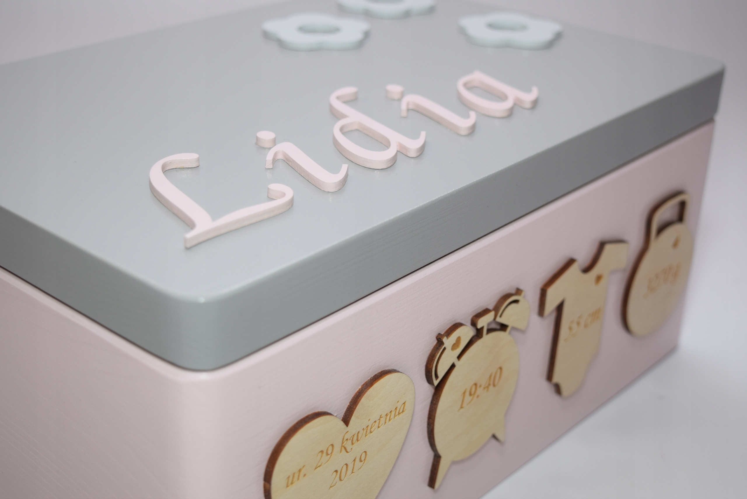 После покупки укажите имя ребенка, которое будет помещено в коробку, а также дату и время рождения. , вес и рост.