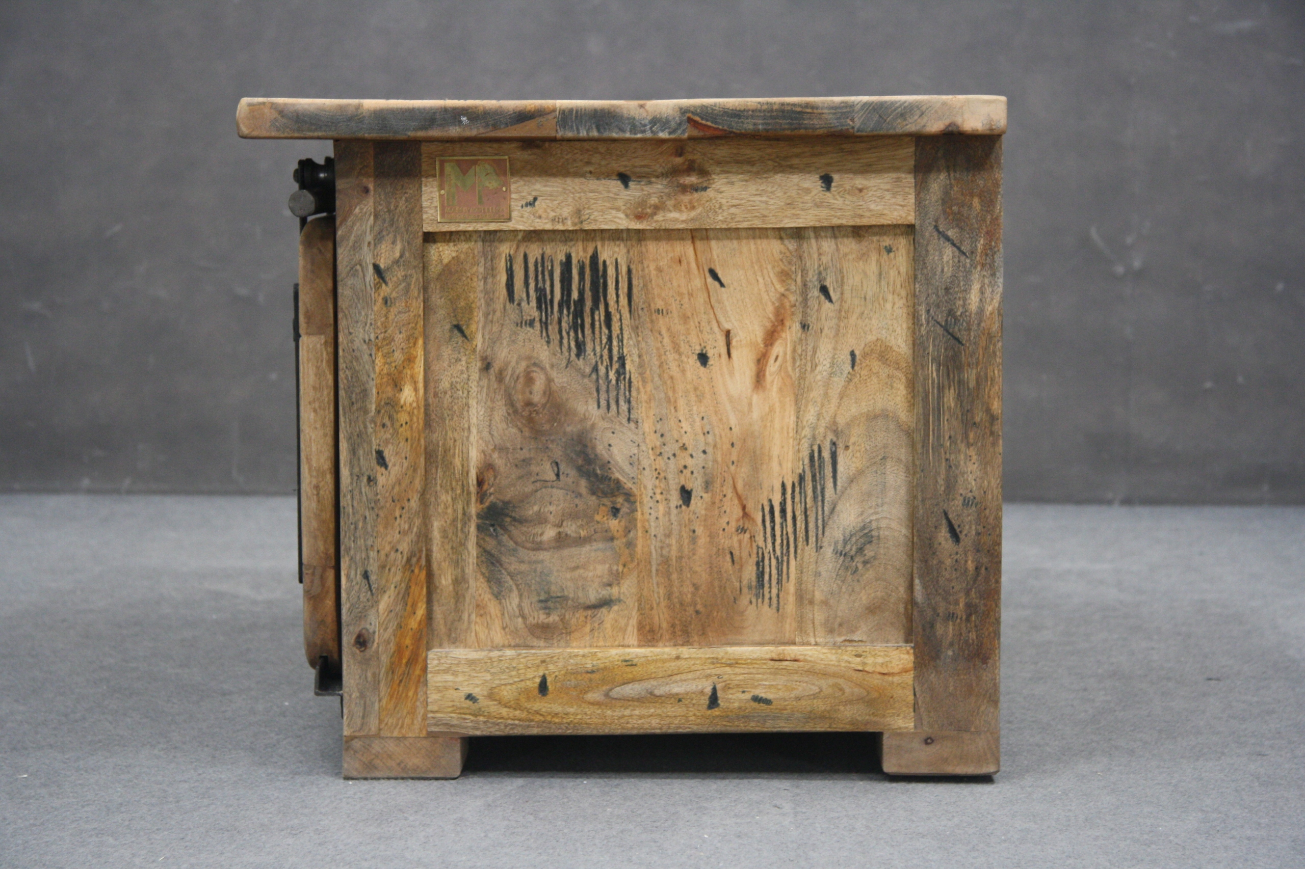 Коробка новая. Изготовлен из древесины индийского манго. Его можно использовать как скамейку. Каждый предмет мебели уникален благодаря ручному изготовлению и породе дерева. Она отличается цветом и структурой дерева (мелкие трещинки, дырочки, ажурные углубления, которые специально сделаны), что подчеркивает индивидуальность мебели. Двери выполнены в индустриальном стиле на роликах с металлической отделкой фасадов.