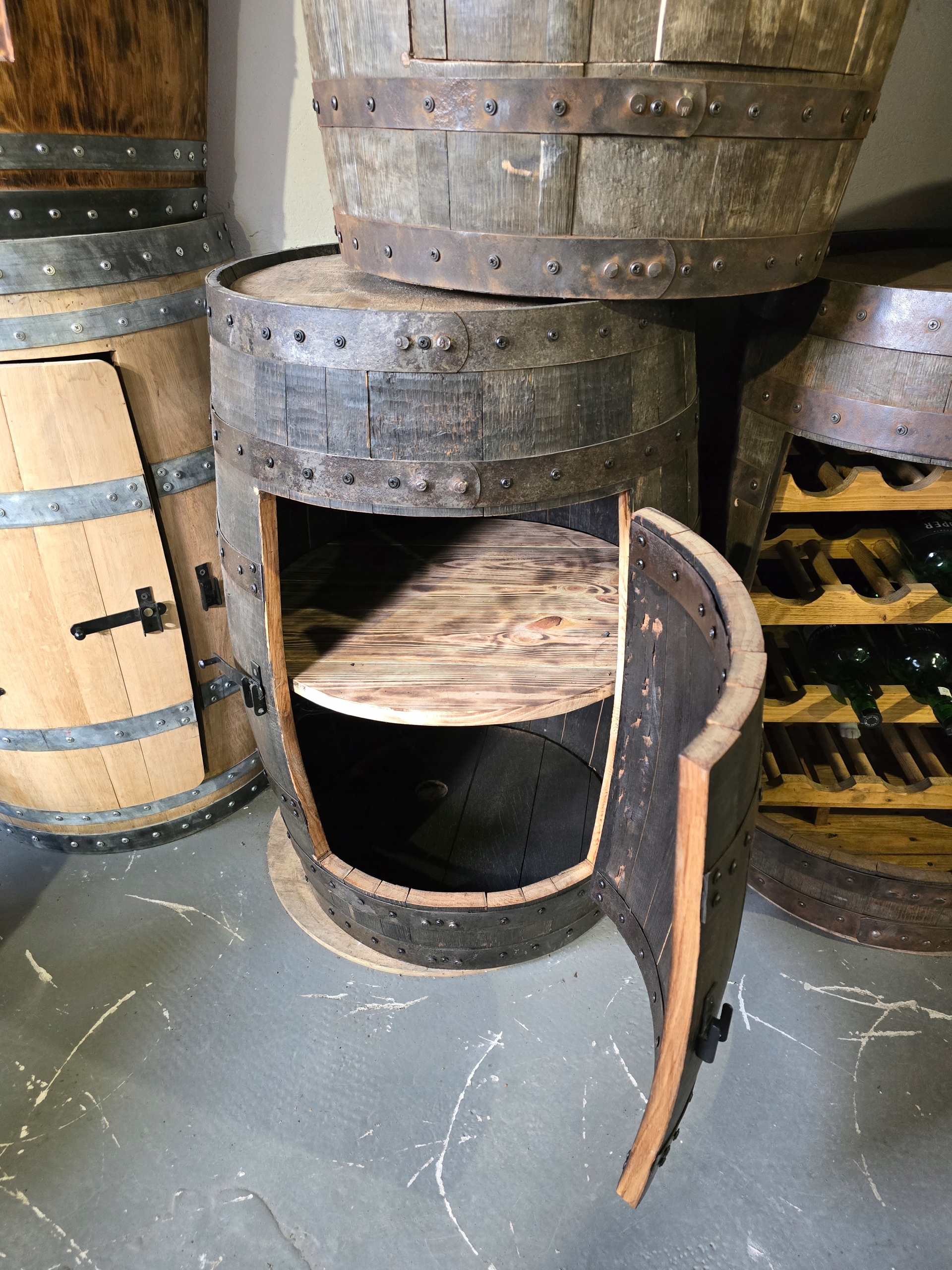 Объект аукциона - большая, яркая, отшлифованная грудь. COSES: -Beefly, зеркала, столы, стулья, хокеры, столы, военные коробки, бочки (200 л, 225 л, 500 л) бутылки, скамейки, подсвечники, доски для треков