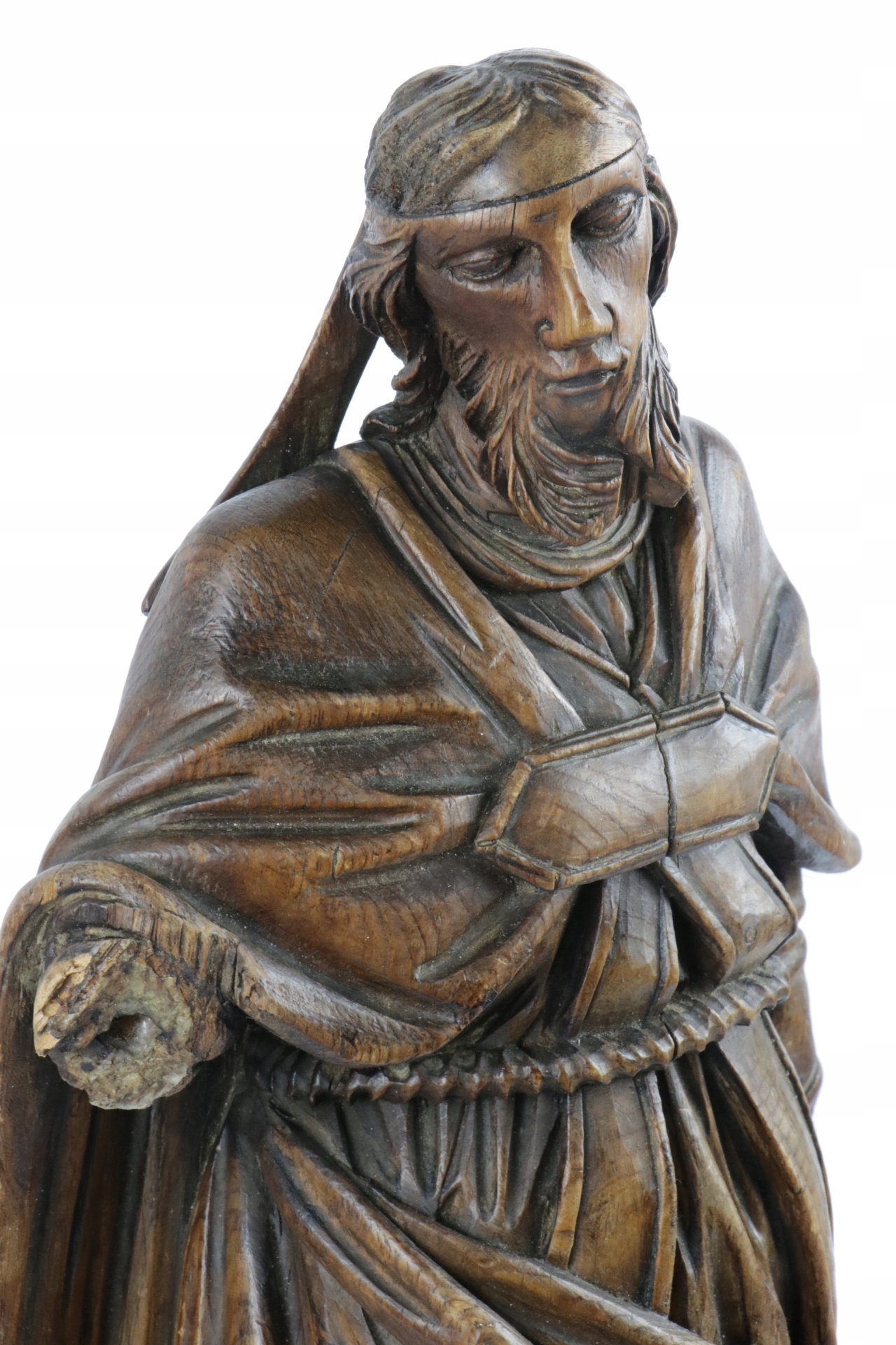 Дерев'яна скульптура 18 століття бароко 53 см Св. Єпископ відсутня митра Антич
