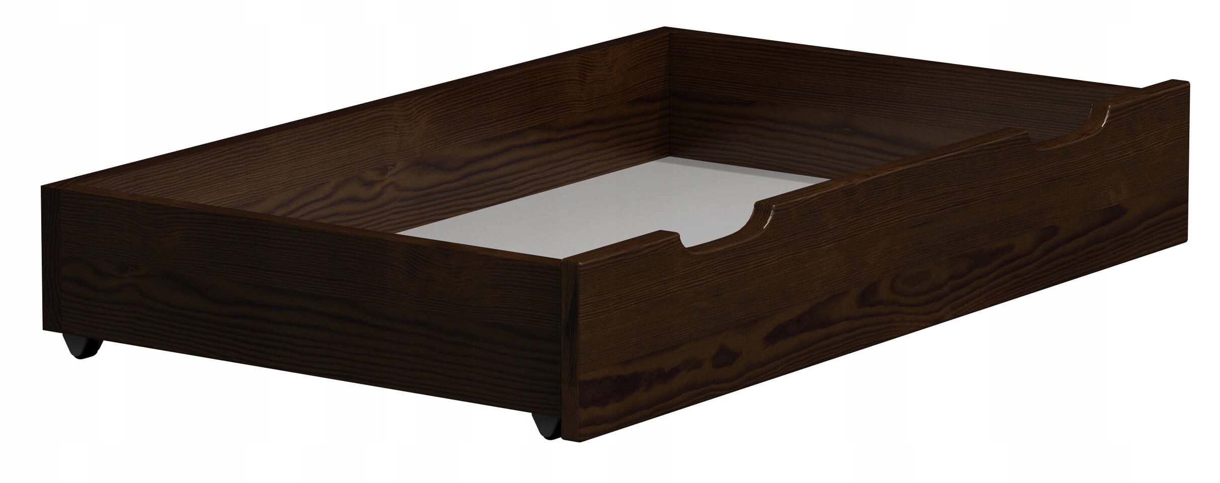 Ящик 98изготовлен из натуральной древесины сосны, что гарантирует прочную и устойчивую конструкцию. Ящик идеально подойдет как для спальни, так и для детской или подростковой комнаты. Мебель поможет вам практично использовать пространство под кроватью. Ящик имеет 4 колеса, благодаря которым его легко вытащить из-под кровати даже с более тяжелым грузом.