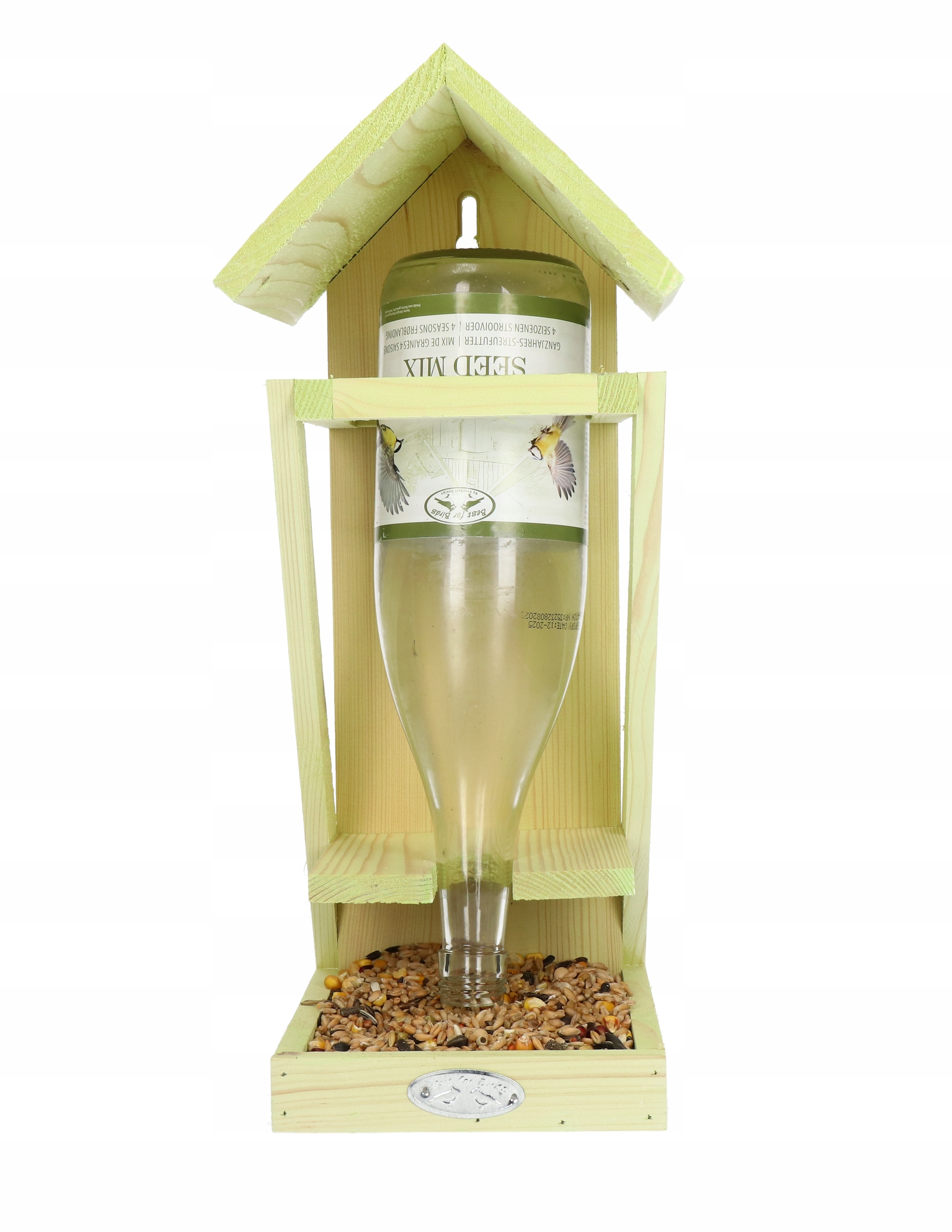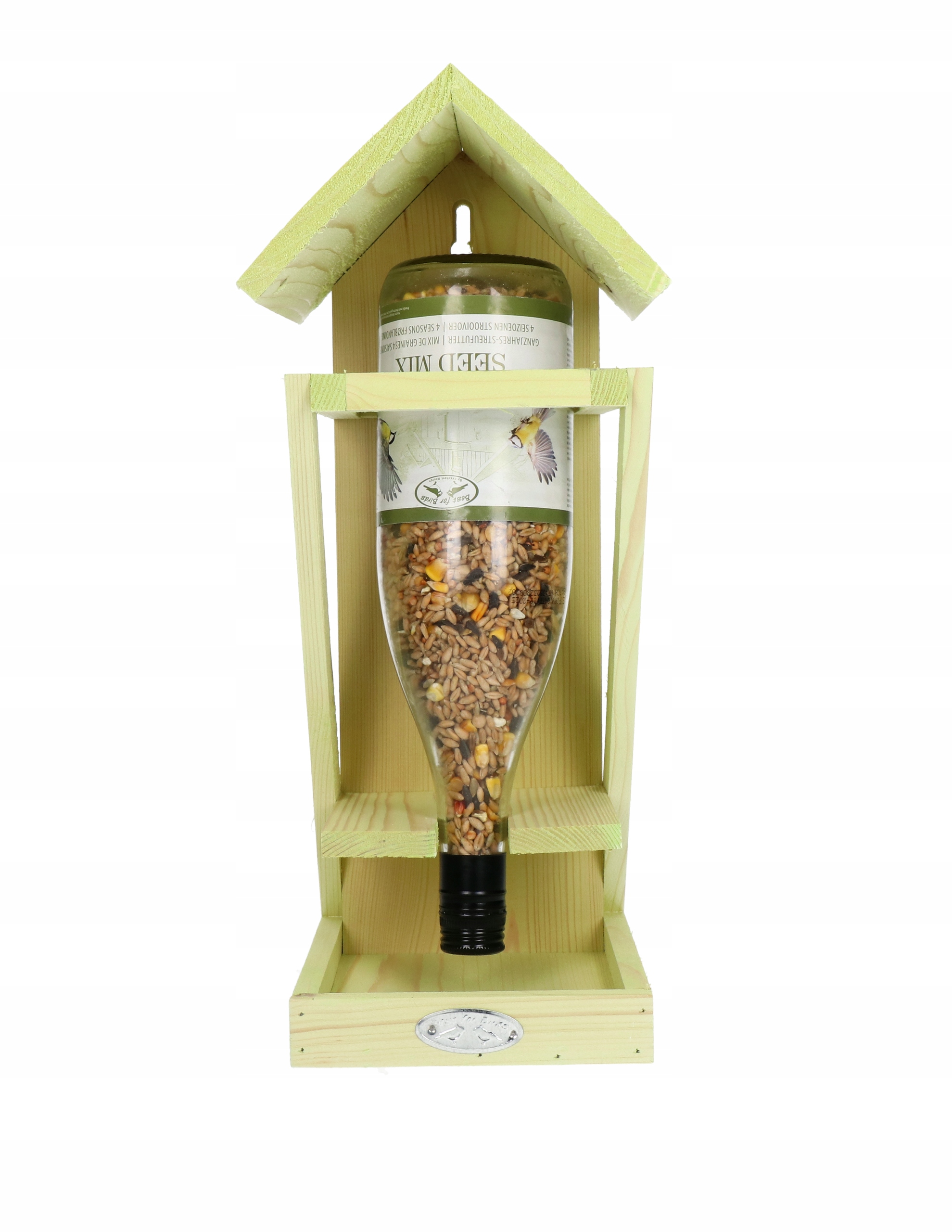 ДЕРЕВ'ЯНА СТИЛЬНА ГОДІВНИЦЯ ДЛЯ ПТАХІВ НА ПЛЯШКУ З ЗЕРНАМИ ЗЕРНОВИЙ КОРМ