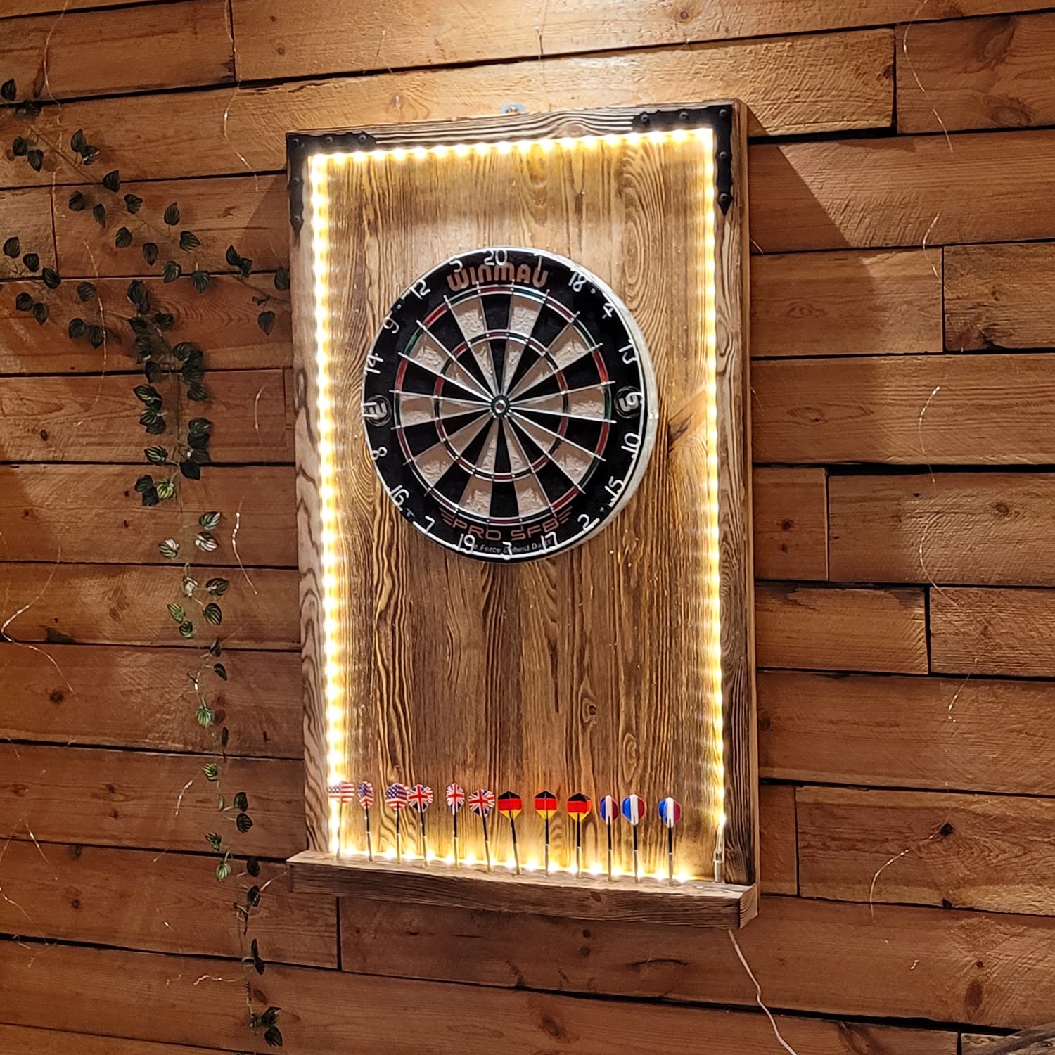 Дерев'яна стінка для гри в дартс зі світлодіодним підсвічуванням 112х70см