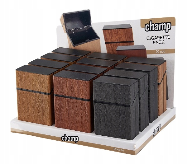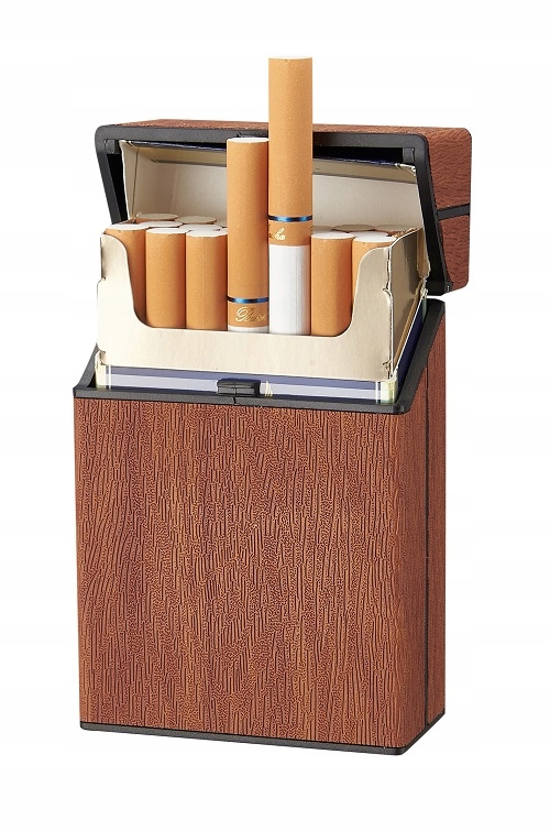 Практичный и прочный пластиковый кейс, загружаемый сверху, вмещающий пачку из 20 сигарет стандартного размера.