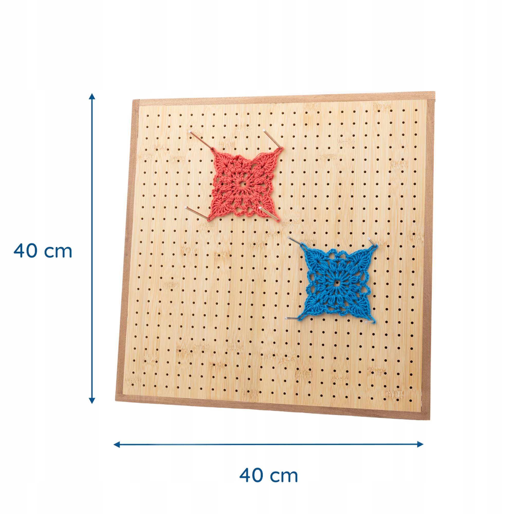 Набор включает в себя таблицу с размерами 40 см x 40 и 8 игл с нержавеющей стали с длиной 10 см , так что вы можете блокировать несколько квадратов одновременно.