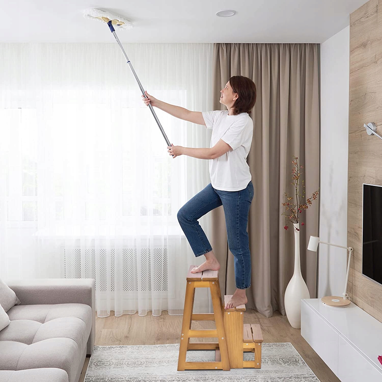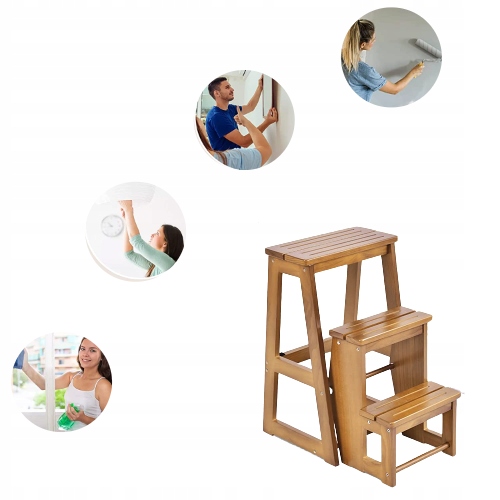 ДЕРЕВЯННЫЙ ТАБУРАТ СО СКЛАДНОЙ СТУПЕНКОЙ, 150 КГ